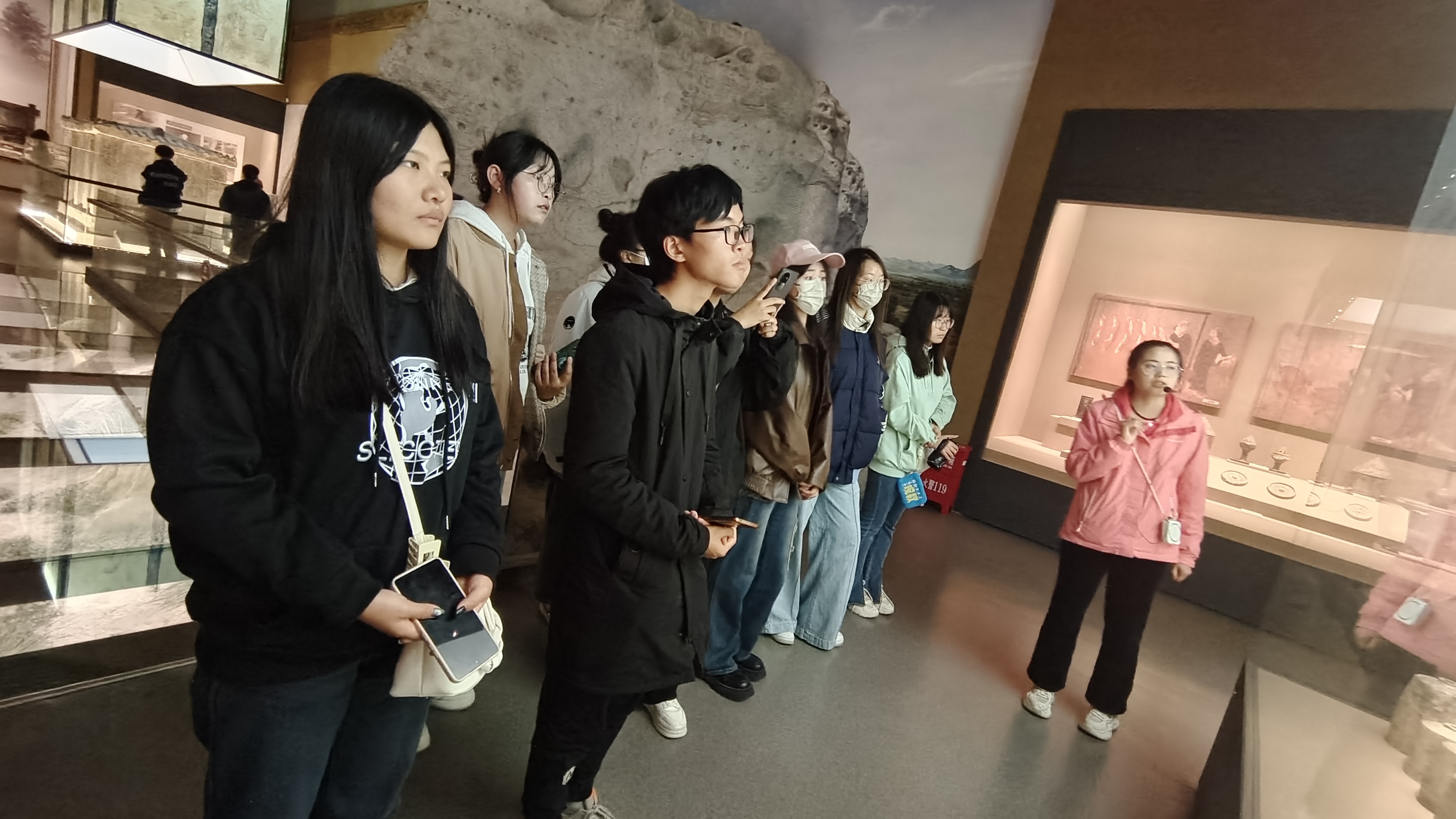 19日,师生首先前往统万城遗址博物馆,通过丰富的文物展品和老师们的实地讲解,同学们深入了解了统万城的历史文化。随后,在五台森林公园内,学生们实地考察了明长城烽燧,感受了边疆历史的沧桑与厚重。最后,师生一行来到靖边博物馆,在讲解人员的讲解下参观了馆内陈列的各类文物,深入了解靖边地区的历史文化。在参观过程中,学生们认真聆听讲解,不时提问,表现出对考古学的浓厚兴趣。