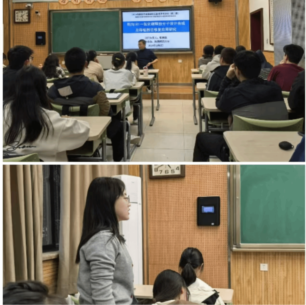 10月31日,化学2403班在雁塔校区教学八楼8104教室举办“教授接待日”活动,张伟强教授应邀参加。活动伊始,学生代表杨佳璨提出:“在大学这段宝贵的时光里,我们应该如何更好地成长?”张教授听后,给出了三点建议。一是大学是个人独立生活的重要阶段,要建立和谐的人际关系;二是他鼓励同学们多读书,提升自己的文化素养;三是他提醒同学们要少刷短视频,以免浪费宝贵的时间,陷入精神空虚的境地。随后,张教授为大家带来了题为“靶向IRI——一氧化碳释放分子设计合成及移植器官修复应用研究”的分享。他深入浅出地介绍了这项研究的背景、意义及最新进展,让同学们在领略科技前沿的同时,也感受到了化学学科的无限魅力与广阔前景。