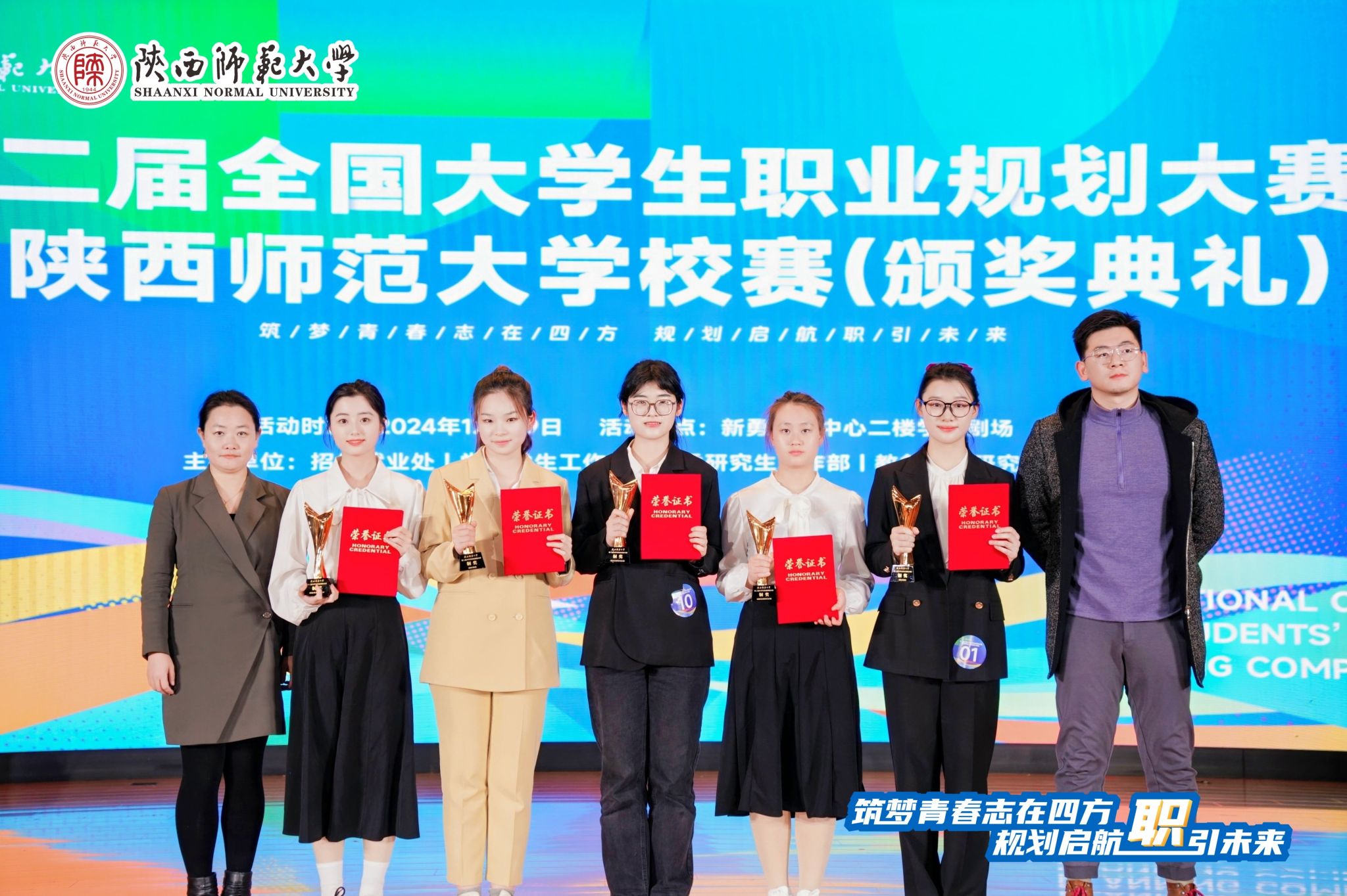 2021级本科生金新宸、田雨欣分别获就业赛道本科生组金奖、银奖,2023级硕士研究生王媛获就业赛道研究生组银奖,2022级本科生朱欣悦获成长赛道铜奖,辅导员邓文珺获“优秀指导教师”荣誉称号,拉斯维加斯娱乐城官网