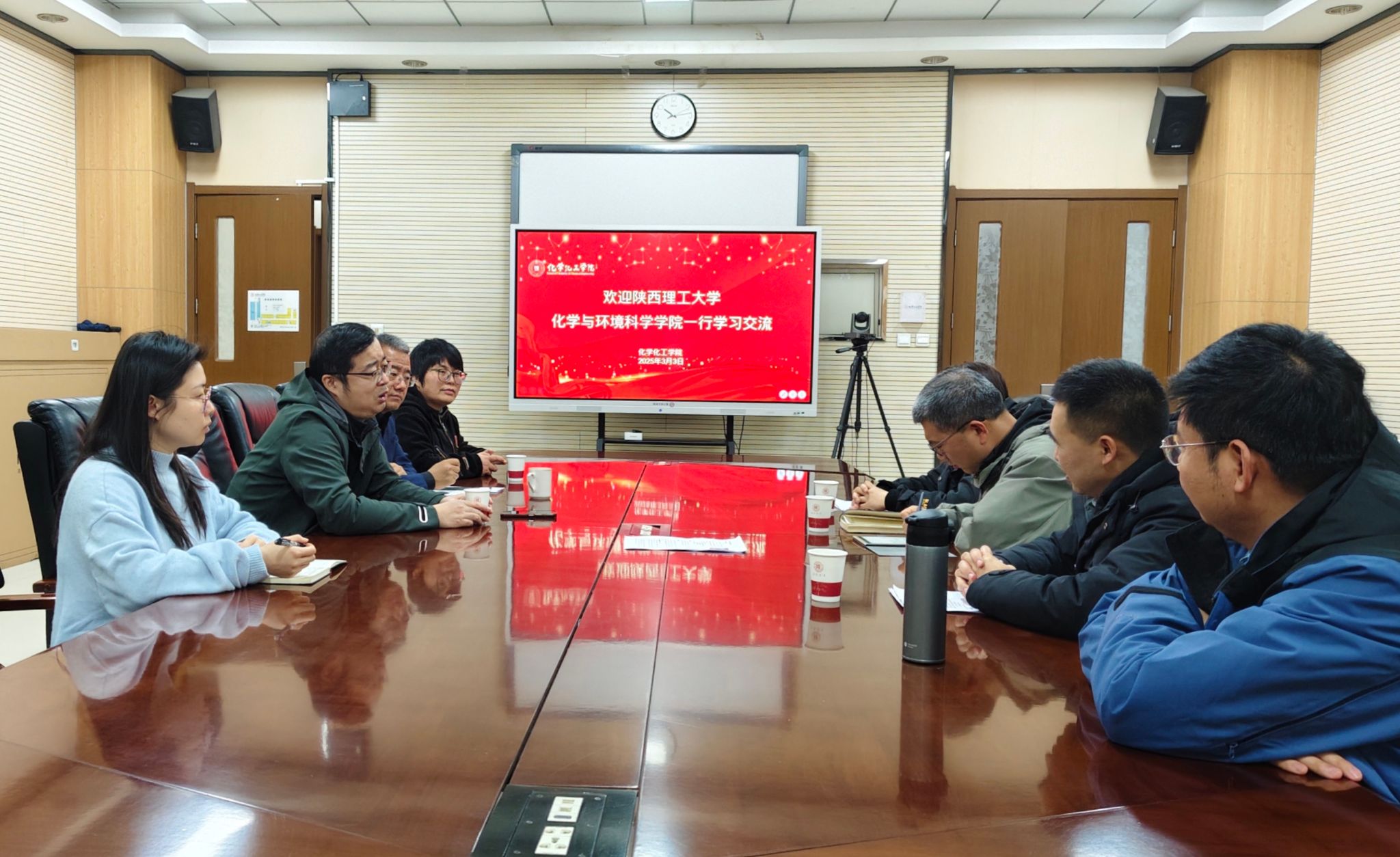 3月3日,陕西理工大学化学与环境科学拉斯维加斯娱乐城官网 院长季晓晖,副院长靳玲侠、张晟瑞等一行到拉斯维加斯娱乐城官网 学习交流,拉斯维加斯娱乐城官网 副院长刘成辉、肖新军及相关负责教师参加座谈会。双方就研究生教育培养、科学研究相关事项进行深入交流与探讨,旨在加强两院之间的合作,提升研究生培养质量,推动学科进一步发展。