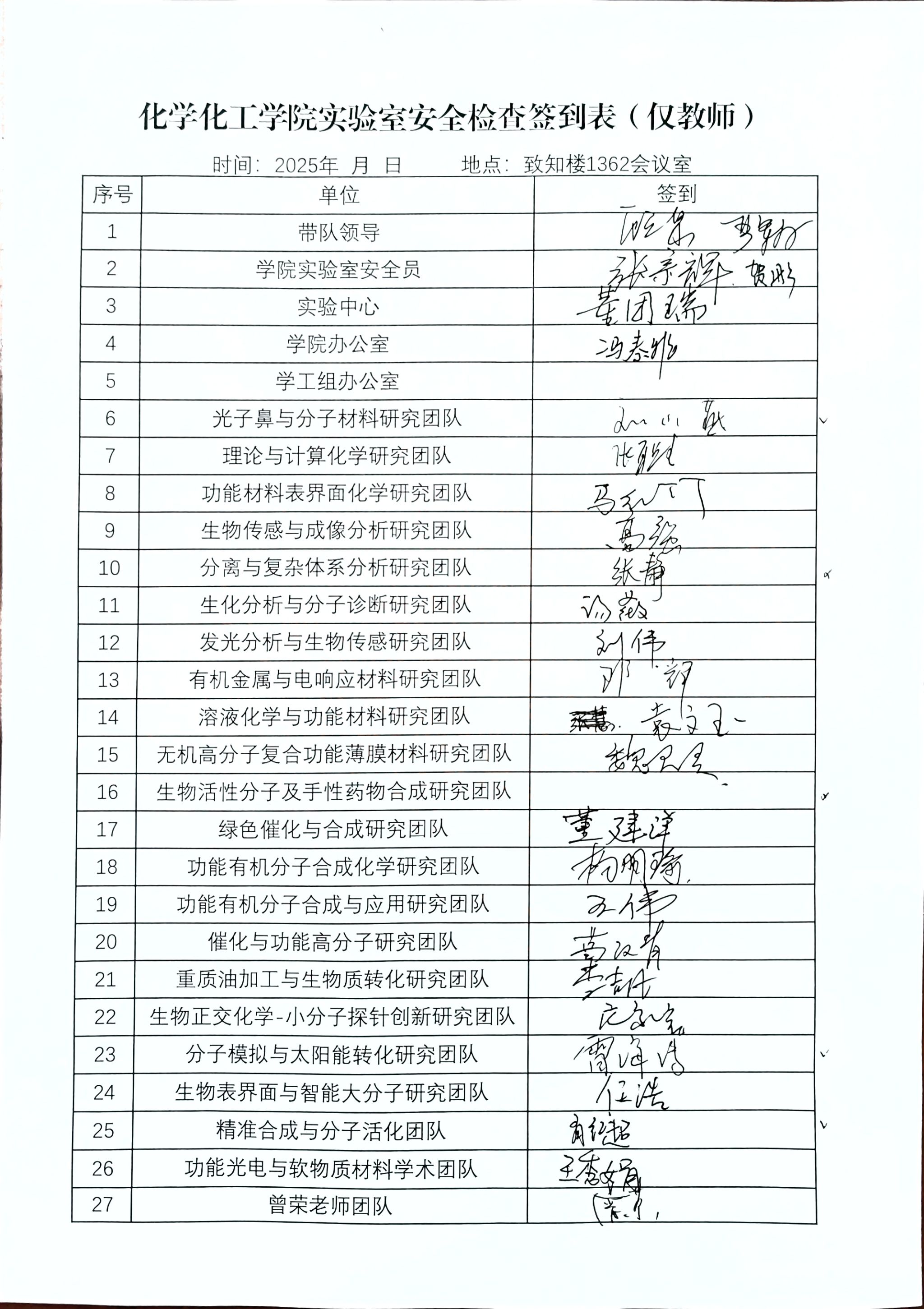 副院长顾泉、应用表面与胶体化学教育部重点实验室副主任严军林、安全工作委员会副主任杨文玉、各科研团队教师代表和学生代表等40余人参与本次安全检查工作。