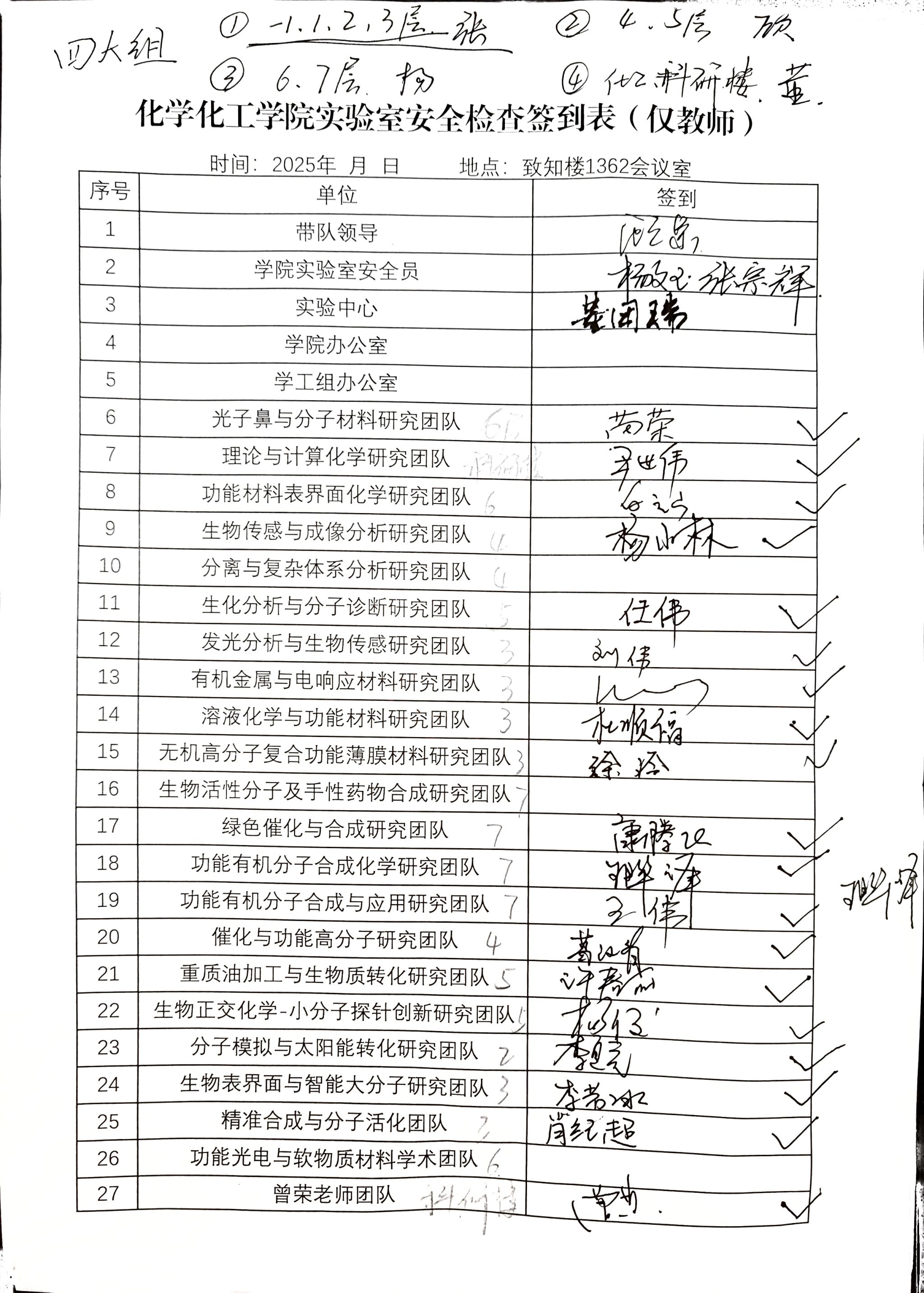 为筑牢安全稳定的教学科研环境开展的常规工作,需要各位老师时时警惕,处处留心。张宗辉对本次安全检查工作进行详细安排,合理划分检查小组并指定负责人,明确对致知楼、化工楼、科研大楼中的科研实验室、教学实验室及公共区域展开逐一检查。