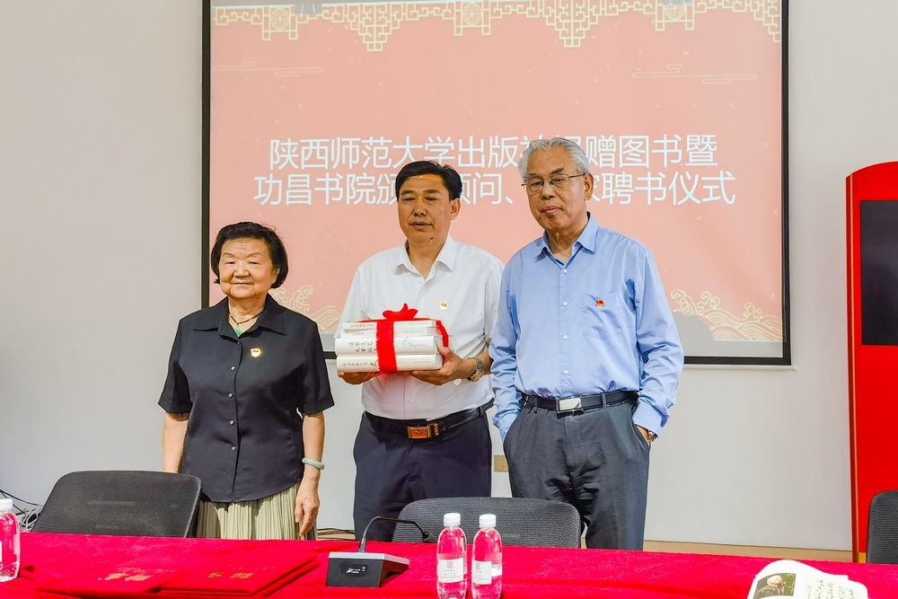 出版总社向书院捐赠了120余册陕北革命史和文学著作等图书,并接受了功昌书院的高级顾问聘书。