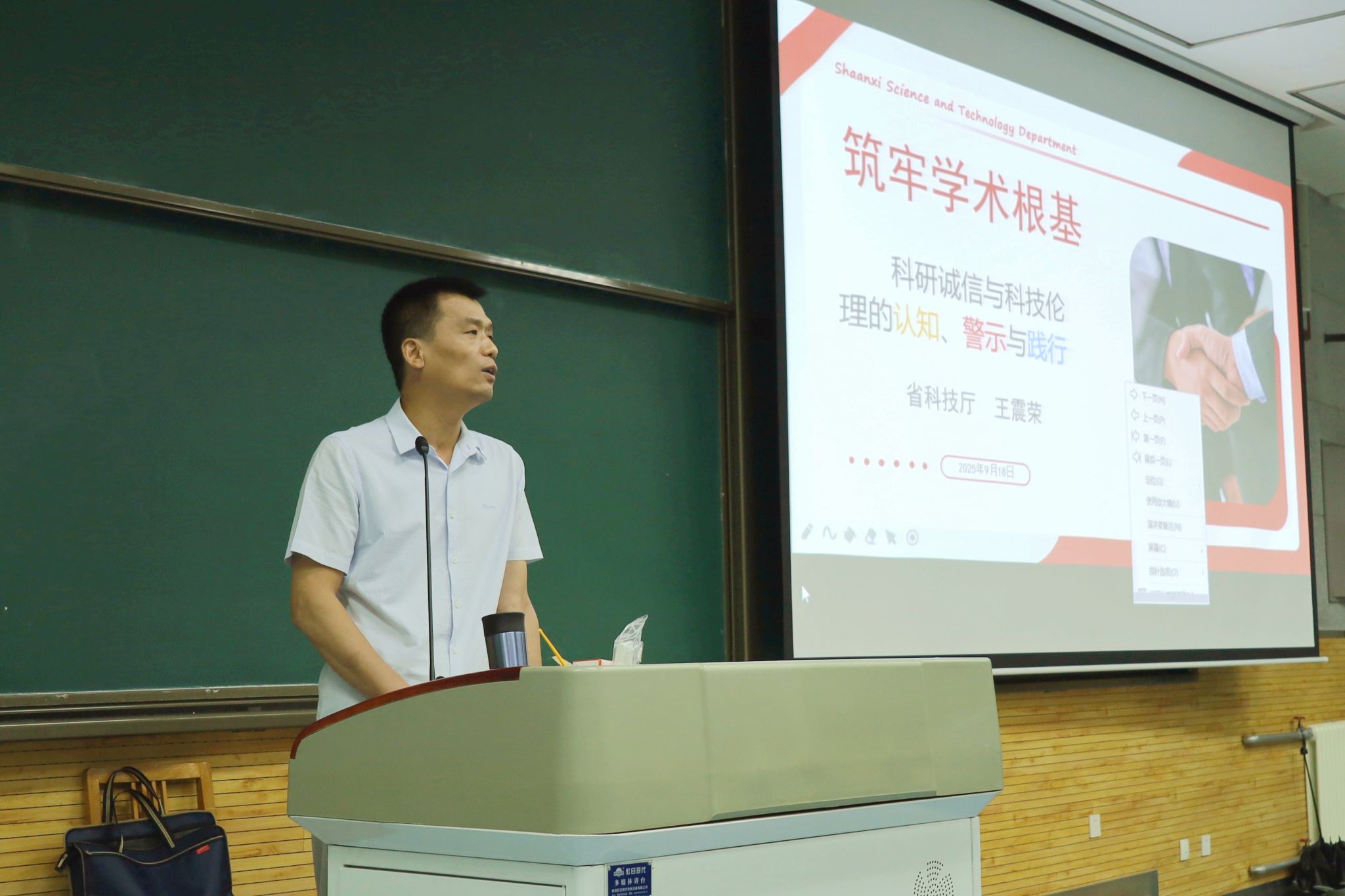 于长安校区文渊楼4202教室举办2025级研究生新生入学教育活动之学术科研诚信专题报告会。本次报告特邀陕西省科技厅监督评估与科研诚信处处长王震荣主讲,拉斯维加斯娱乐城官网