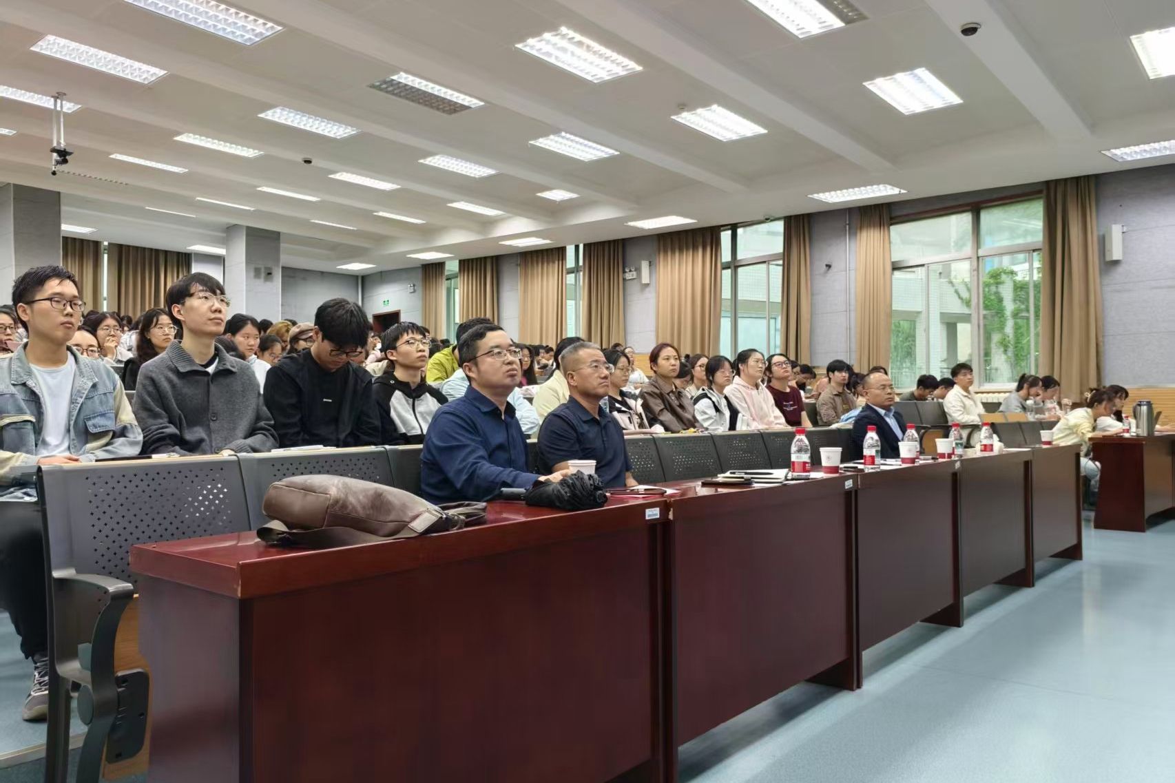 院长刘成辉、党委副书记贾颍辉、副院长肖新军,以及2025级研究生辅导员和全体研究生新生共同听报告。报告会由刘成辉主持。