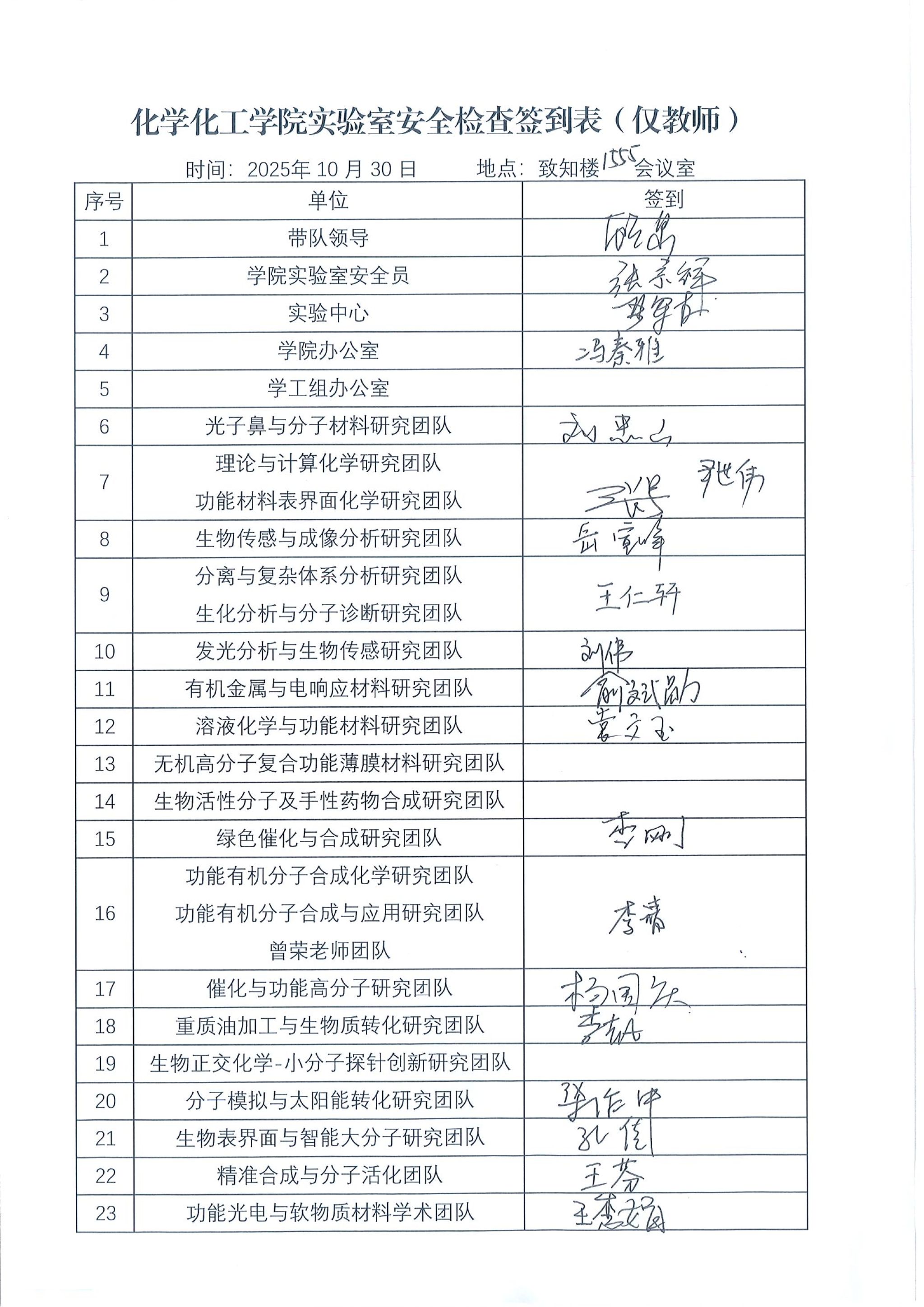 副院长顾泉、应用表面与胶体化学教育部重点实验室副主任严军林、各科研团队教师代表和学生代表等40余人参与本次安全检查工作。