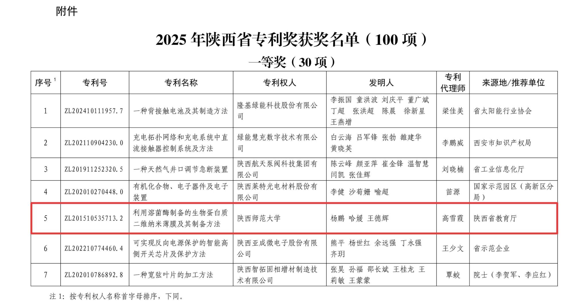 陕西省专利奖是陕西省知识产权局组织和管理的省级部门奖,对在专利高质量创造、高效益运用中产生突出成效的专利项目给予奖励。每三年评选一次,设一等奖、二等奖和优秀奖三个授奖等次。本次共评选出一等奖30项,二等奖30项,优秀奖40项。