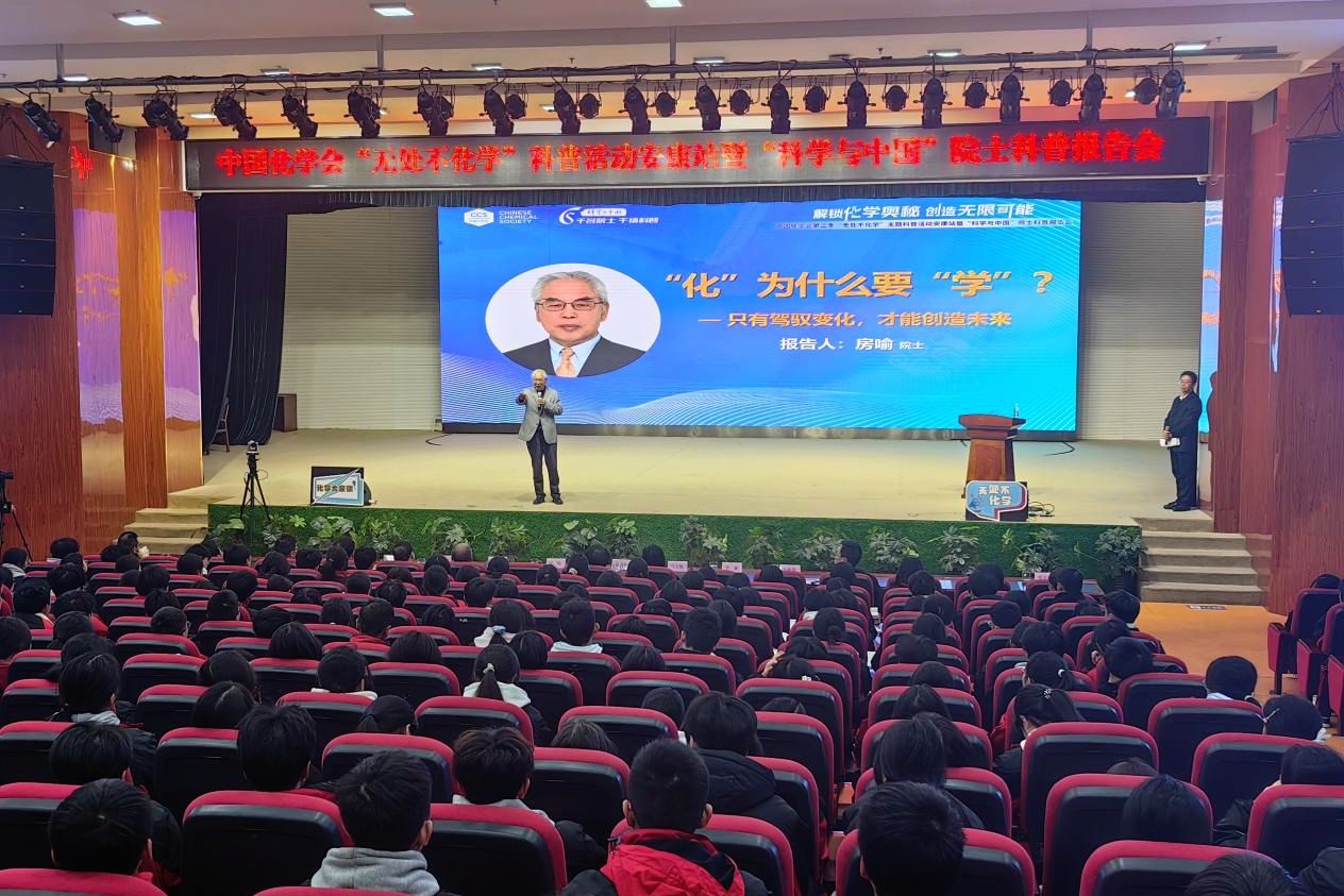 在安康市紫阳中学举行的中国化学会“化学大家谈”系列科普报告第十五讲报告会上,房喻院士以《“化”为什么要“学”?只有驾驭变化,才能创造未来》为题,讲述了化学是什么、化学的发展、化学的作用,鼓励大家要保持对未知的好奇心,以扎实严谨的态度对待科学探索;要培养宏大志向、具备坚韧品格、家国情怀,成为德才兼备的创新型人才。