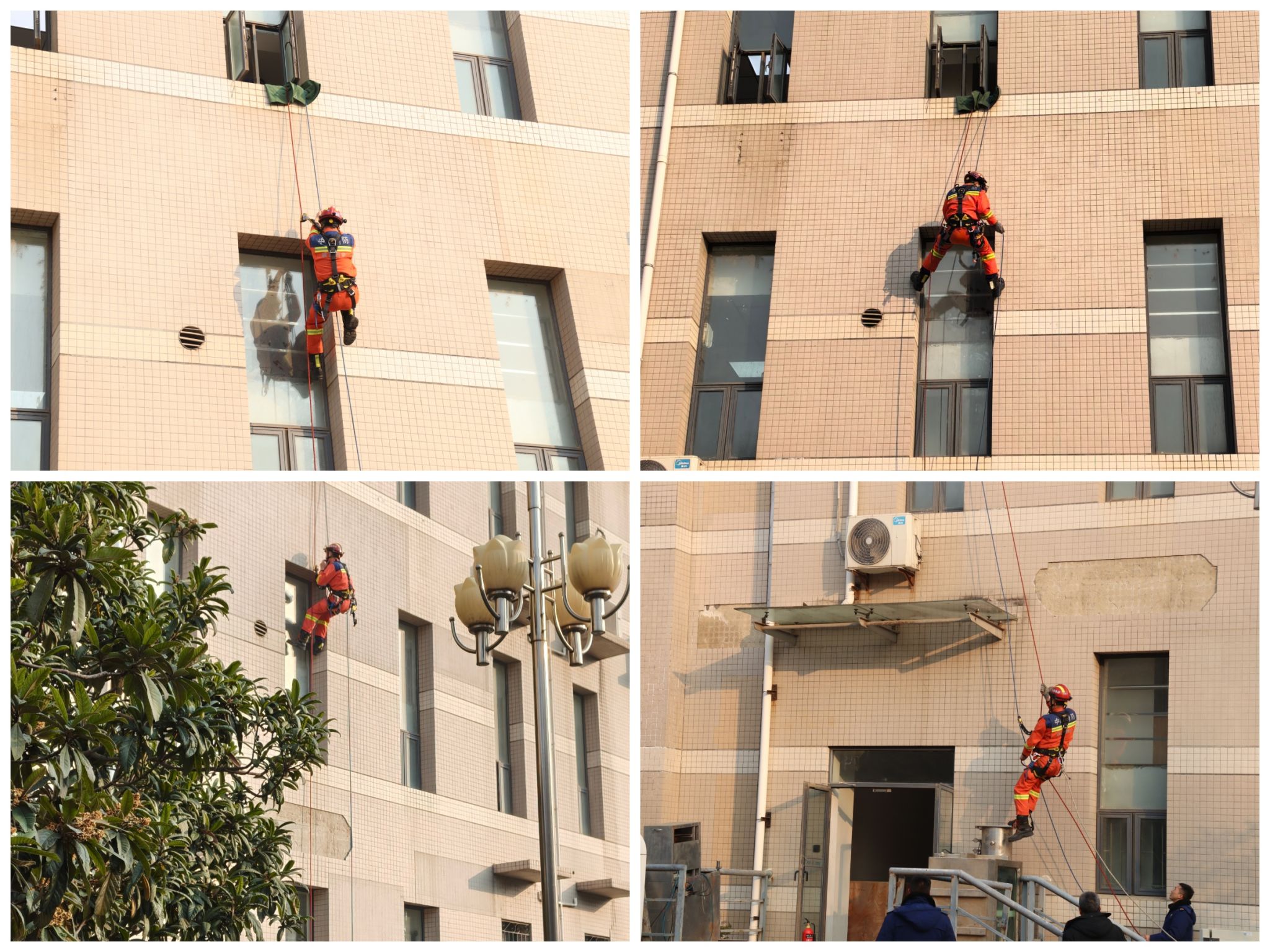 特别邀请长安区消防大队翰林南路消防救援站队员现场教学高空速降逃生技能。队员王杰详细讲解速降动作技术要领、安全绳锁使用方法及适用场景,示范员陈俊进行现场展示,为师生传授了专业实用的逃生知识,助力师生掌握保障生命安全的关键技能。