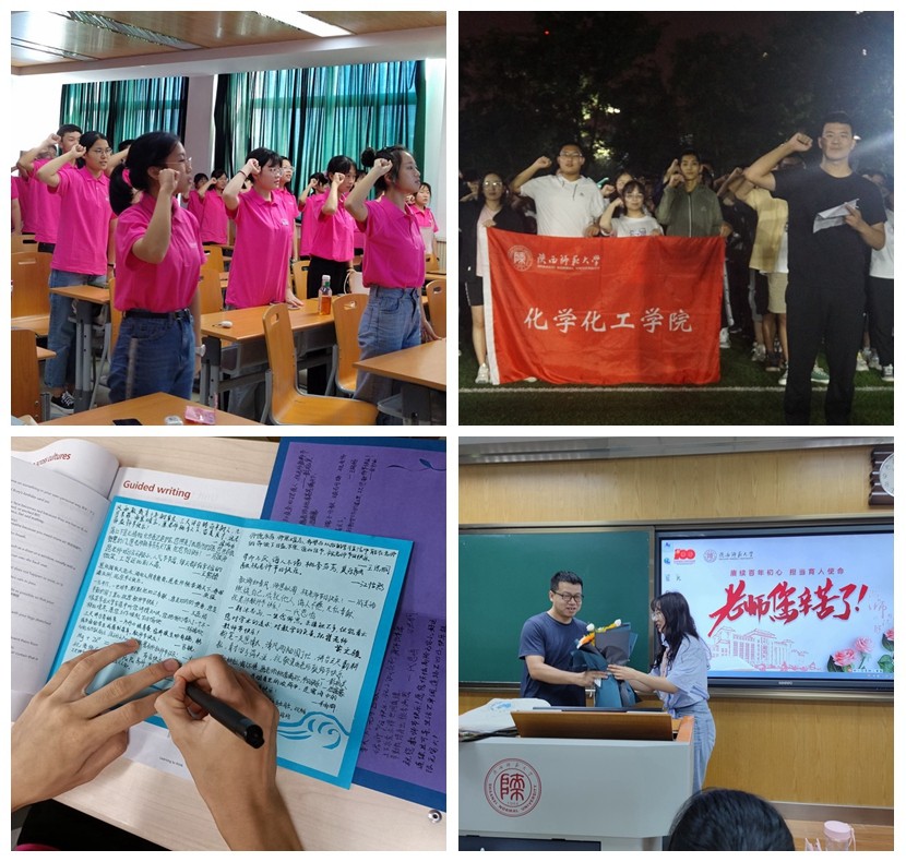 注重发挥仪式教育功能,强化思想引领和精神洗礼。一是促进行为养成,在开展“感念师恩”主题活动,各班级发起“上课起立问好,下课起立再见”的文明礼仪倡议,学生们在教师节当天通过手写贺卡、赠送鲜花、录制视频、推送文章等方式纷纷向老师们献上节日祝福,营造了尊师重教的良好氛围;二是增进情感接受,开展 “青春宣誓言师志”集体宣誓活动,组织师范面向国旗庄严宣誓:“我愿意成为一名光荣的人民教师,弘扬践行‘西部红烛两代师表’精神,恪尽职守、用心教书……”依托仪式教育强化对教师职业的认同感和归属感;三是助力梦想腾飞,举行2021级学生开学见面会,邀请全国优秀教师陈亚芍教授,全国模范教师、陕西省师德楷模沙涛,国家级人才计划学者何刚等优秀师德代表与学生吐露教育初心、畅谈教育情怀,勉励学生筑牢理想之基,致知力行、踵事增华。