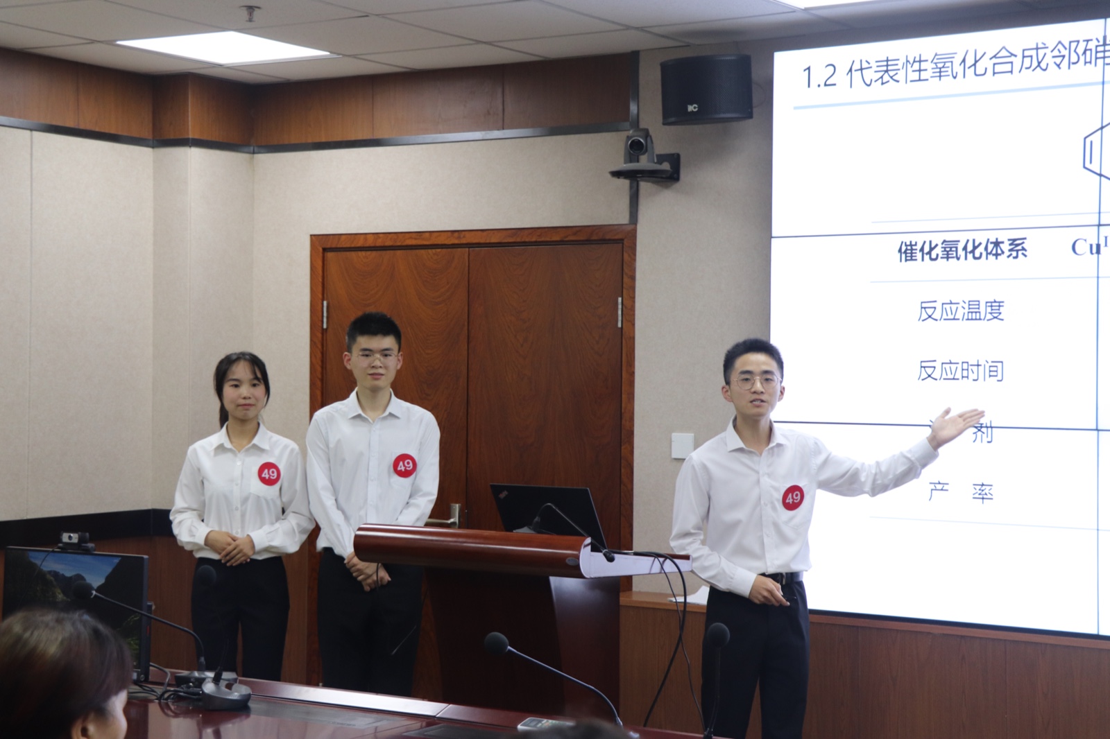 比赛期间,三位同学勤奋刻苦,精诚协作,各司其职,针对每个实验细节反复练习,围绕每个答辩内容反复推敲,总结比较多种氧化试剂差异,实验操作练习不少于50次,答辩模拟不少于100次。比赛场上同学们坚毅沉稳、精益求精,充分展现了师大学子运用化学理论知识联系实践的综合创新能力和良好的团队协作精神。