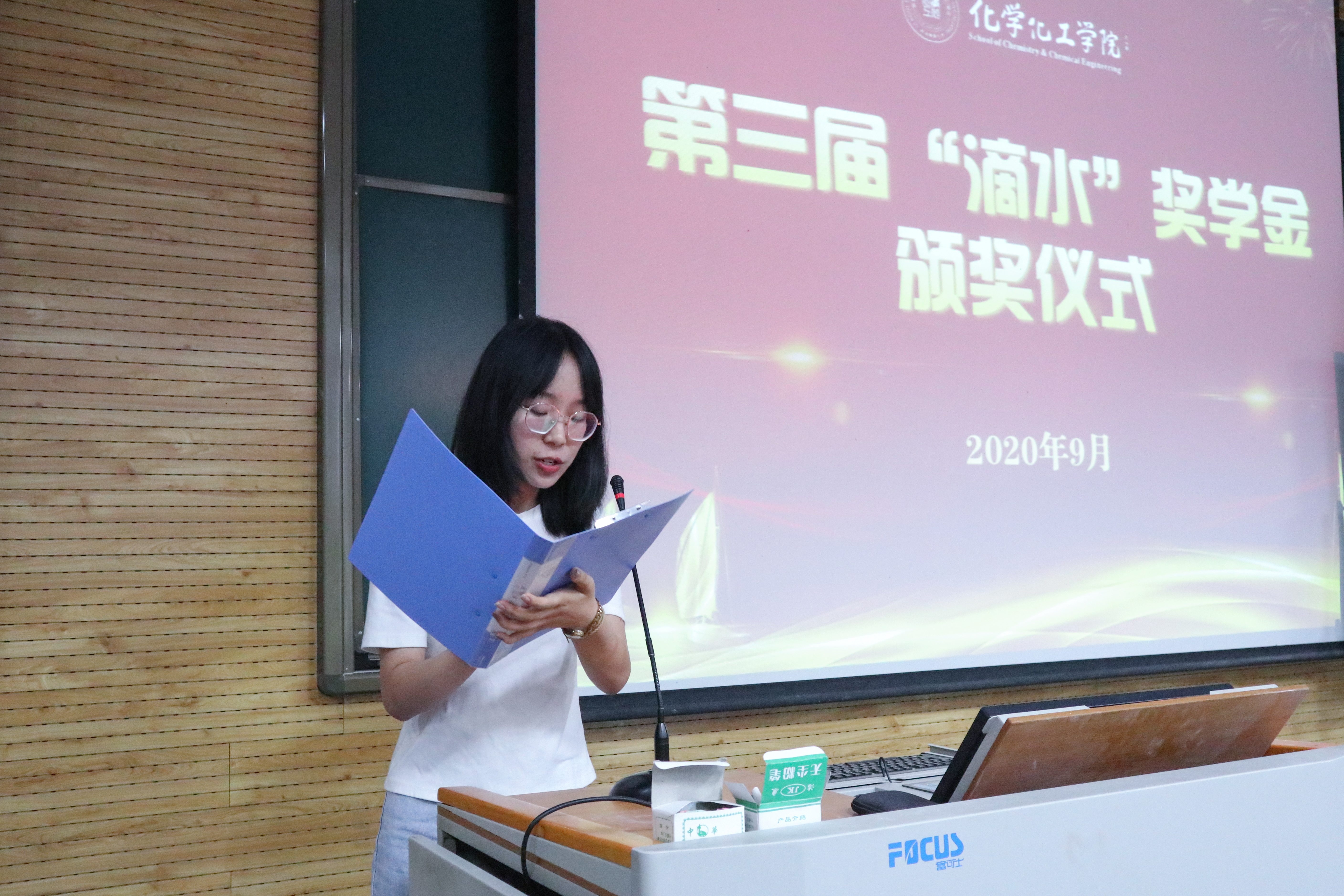 党委书记高玲香、分析化学教研室主任漆红兰、教工分析化学党支部书记刘伟、2019级辅导员邓文珺及2019级全体学生参加颁奖仪式。颁奖仪式由高玲香书记主持。