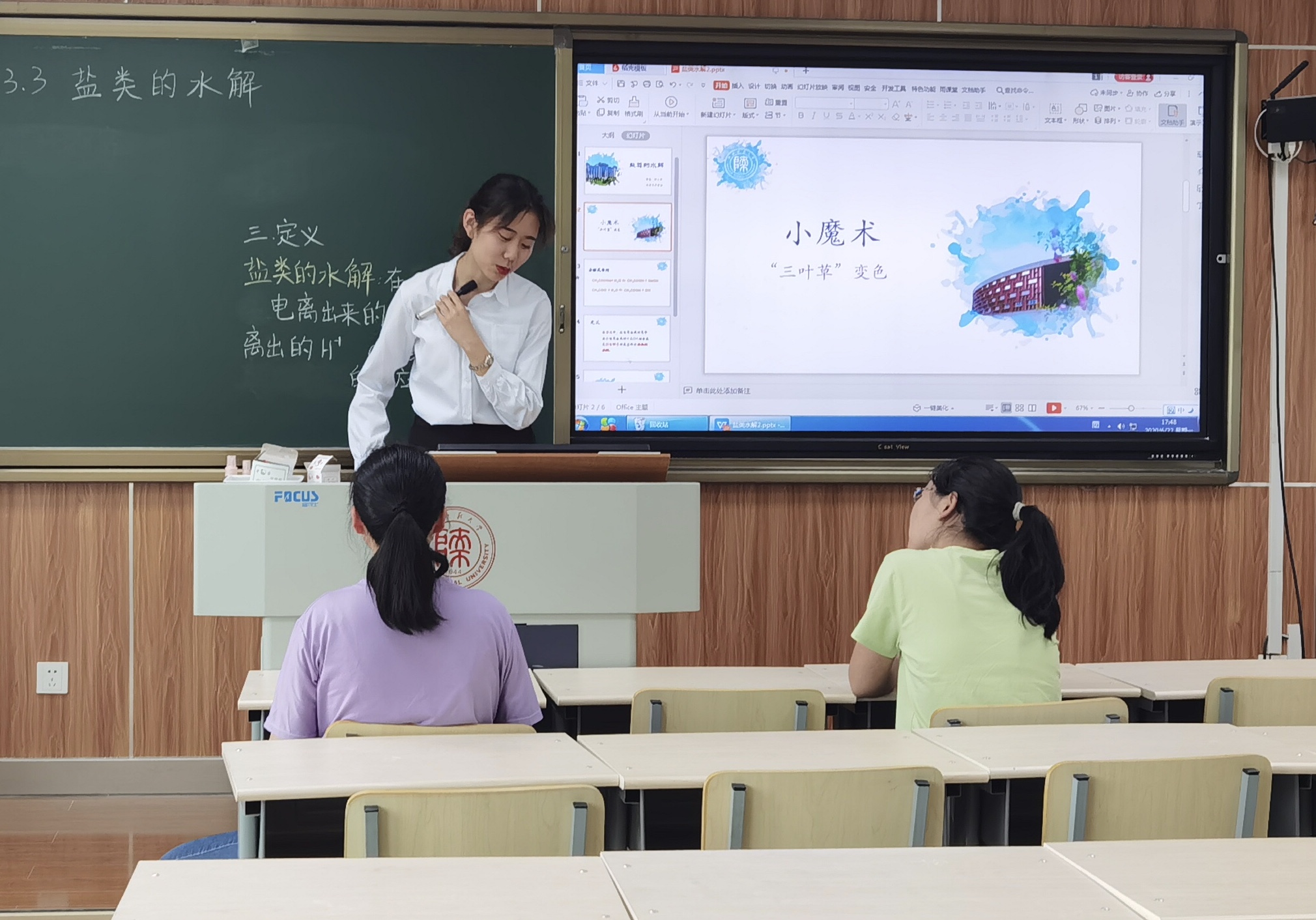 选手亦有出色表现。在准备时间只有150分钟的情况下,选手们完成了教学设计、即席演讲准备、模拟授课准备以及说课稿撰写,通过《氯水成分的探究》、《乙醇的分子结构与部分化学性质》、《原电池的构成条件》等课程的讲授得到了评委的认可。