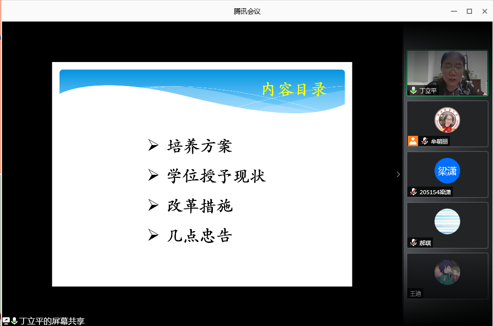 丁立平从培养方案、学位授予现状、改革措施等方面对2020级公费师范生教育硕士的学习做出了指导,并对学生提出了几点忠告,她要求同学们认真上课;有计划、有步骤开展学位论文工作;注重加强与导师的沟通;严守学术诚信,杜绝学术不端行为。