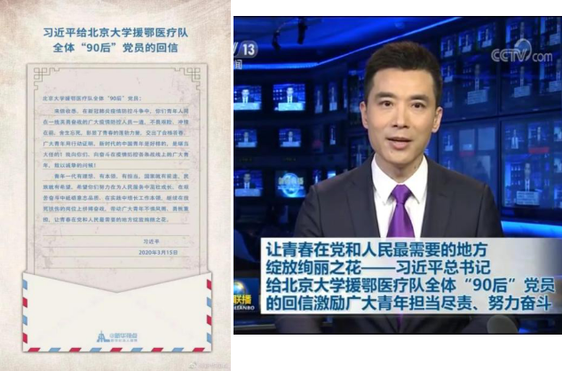 3月15日,中共中央总书记、国家主席、中央军委主席习近平给北京大学援鄂医疗队“90后”党员回信,向他们和奋斗在疫情防控各条战线上的广大青年致以诚挚的问候,勉励广大青年不惧风雨、勇挑重担,让青春在党和人民最需要的地方绽放绚丽之花。拉斯维加斯娱乐城官网