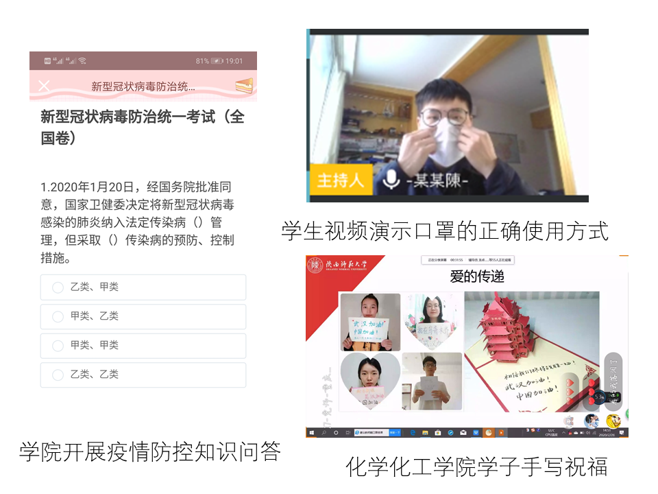 组织本科生各班级通过网络连线的形式,积极开展了以爱国主义教育、生命教育、感恩教育等为主题“云班会”。2月27日下午,游旭群校长参加了化学(创新实验班)1802班的“生命之花绚丽绽放”主题“云班会”。本次班会由辅导员翁思洁主持,班主任俞斌勋和全班56名学生参加。