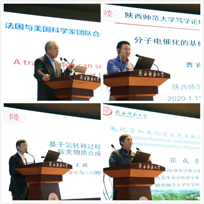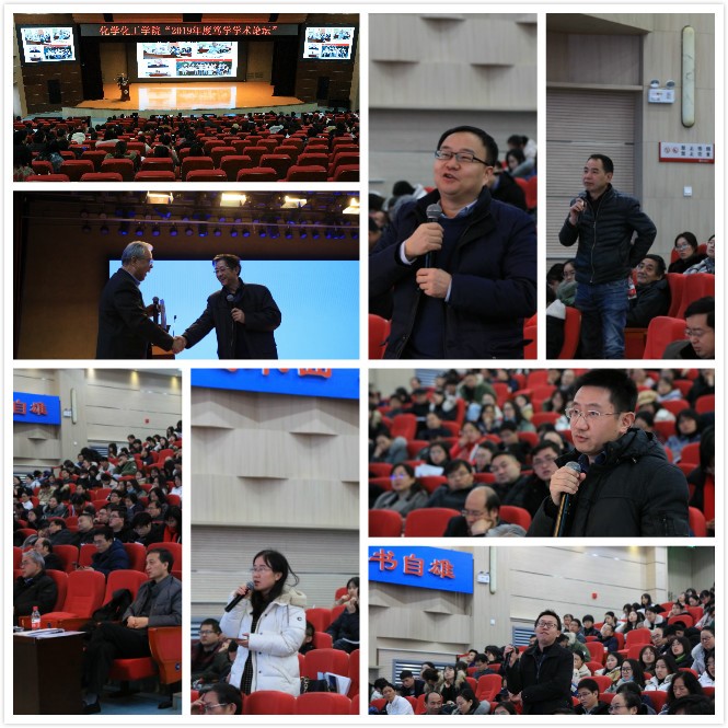 各学科学术带头人、优秀青年学者房喻、张成孝、李兴伟、白俊峰、曹睿、王超、杨鹏、王长号、翟全国、何晓明、刘成辉、赵娜等老师,分别作了题为“分子凝胶和凝胶乳液——从气凝胶到高性能多孔材料”“电化学和电化学发光生物传感研究进展” “经底物活化实现不对称碳氢键活化与转化” “Metal-Organic Frameworks from Multidentate Carboxylate Ligands with the Additional Function Groups:New Methodology(Structures),High Performances,New Property,and Perspectives”“分子电催化的基础和应用研究”“基于氢转移过程的胺类物质合成”“蛋白质基功能高分子表界面”“人工核酸金属酶的组装及其手性催化功能”“三核簇基金属—有机框架”“超分子聚合物以及光电功能高分子”“面向液体活检的核酸标志物分析”“细胞器成像及诊疗分子探针”的专题报告,介绍了各自研究方向的具体内容、研究成果和后续工作设想,并与与会师生展开了热烈的讨论,报告会内容丰富精彩,既有基础科学研究,又有产业化研究,同时也有科研感悟。整个论坛气氛热烈,互动交流此起彼伏。