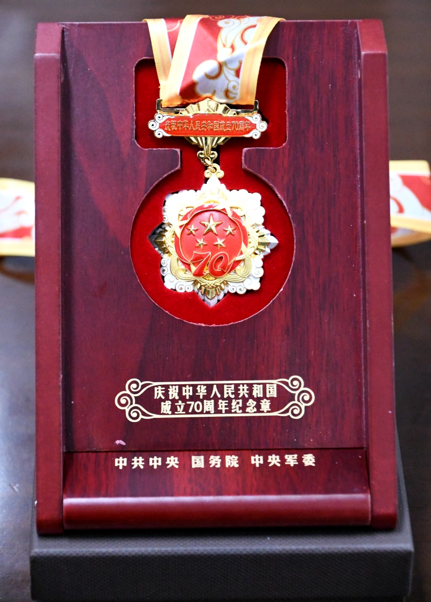 房喻教授颁发“庆祝中华人民共和国建国70周年”纪念章。