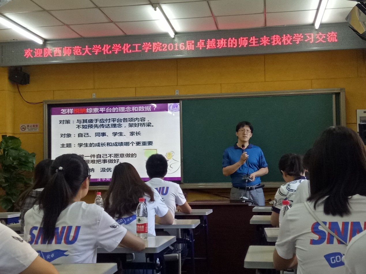 特级教师、清华附属中学教研组长冯清华作了“如何成为一名卓越教师”的专题报告。她以自身的丰富的执教经验给我们讲授了教师专业发展的几个阶段并重点讲授了如何在高成就期开辟出人生职业的第二曲线,避免走向下滑期。冯老师提到,一位教师要想快速的成长,首先要学会反思,包括对教材、学生行为、教师自身发展以及教学行为的反思,在反思中总结,在不断总结中积累成果,一次次的成果的积累便代表了我们职业道路上的成长。同时,用心执教也是必不可少的,冯老师分享了多年来组织的丰富的学科活动,比如设计高分子材料大海报、我的高考我决定、化学知识竞赛、参观污水处理厂等,不仅巩固了学生的学科知识,还学生学习化学的兴趣并投身于未来化学的相关领域中,要站在学生的角度思考问题,用心服务学生,结合学生未来发展,才能知道他们最需要什么,才能萌发出各种各样的想法,才能一直坚持做下去。所以说,一位好的老师,不仅要具有扎实的学科知识和先进的教学理念,还应有热爱教育事业热爱学生的信念,这种信念会支撑着教师不断创新坚持不懈,在职业道路上越走越远。