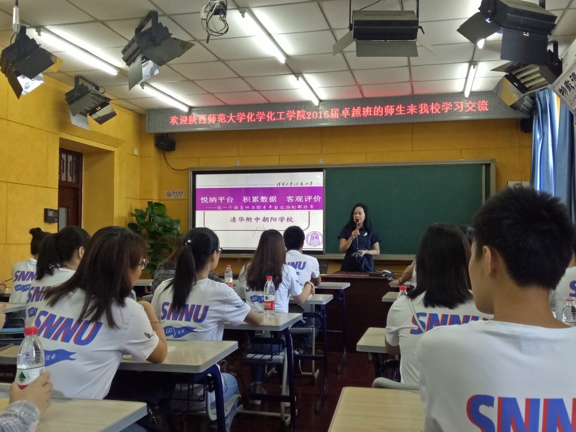 走进清华大学附属中学,就有一股浓浓的书香气息,清华附中师资丰厚,学习氛围浓郁。对我们的到来,清华附属中学副校长张晓宁以地道的陕西话表示热烈的欢迎,并深情致辞,以自己亲身的工作经历鼓舞同学们热爱教育事业,秉承立德树人的教学理念,做一名有毅力有梦想的好老师。在张校长的讲话中,我们认识到作为一个老师,要坚持自己的初心与梦想,热爱自己的工作,对待学生要用心,用真心去关爱每一个学生,让学生感受到温暖,对学生的学习与成长方面会有很好的影响。而作为一个管理者,她们的理念是高效精准,人性服务,无论是对待同事还是对待学生,都要高效率的回复他们。