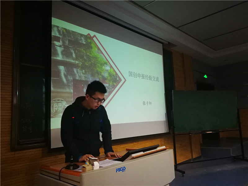 教务处的通知要求,2017级召开大学生创新创业训练项目申报动员会。辅导员老师面向全体学生讲解了国创项目是什么、为什么要申报国创项目以及怎样申报科创项目,鼓励大家积极参与其中,并就大家普遍存在的联系导师、团队合作、申报书撰写等问题进行了集中解答。三月中旬,邀请了高年级参加国创项目并顺利结项的学长学姐进行了主题分享,他们结合自身经历讲述了项目答辩、实验设计、英文文献阅读等宝贵经验,使同学们对国创项目的了解更进一步。