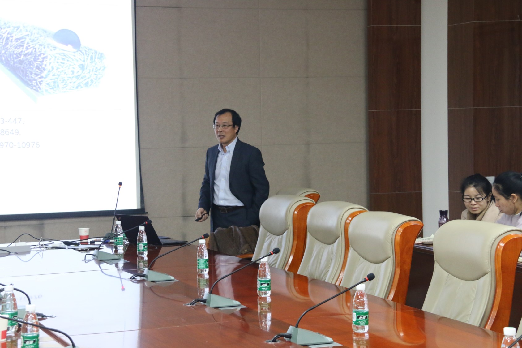 刘国军教授分别介绍了他课题组在嵌段共聚物修饰无纺布水油乳液分离及聚合物双疏涂层的研究进展,并回答了师生感兴趣的问题。以上述两个课题为例,刘国军教授从基本的聚合物设计合成、结构性能研究、应用探索,工业化推进等方面做了详细介绍。刘国军教授还进一步分享了他研究成果产业化转化的经验,极大地激发了广大师生科研的兴趣及自信心。报告会后,拉斯维加斯娱乐城官网 师生就具体问题与刘国军教授进行了深入探讨与交流,使大家受益匪浅。