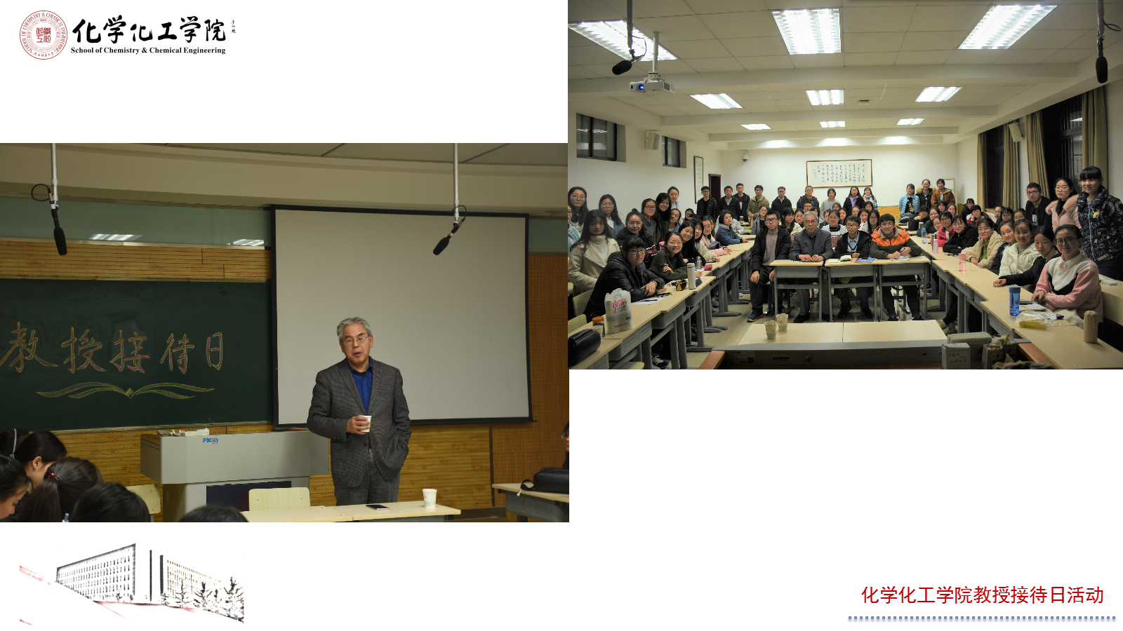 12月12日,刘志宏教授应邀参加2018级化学类1801班以“化学与未来”为主题的教授接待日活动。此次活动主要围绕着化学专业的就业面与就业前景展开,刘志宏教授用自身以及女儿的真实学习与工作经历,深入浅出,耐心细致的为同学们解疑答惑。同时,刘老师特地就关于英语的学习问题给同学们提出了“艰苦奋斗”的建议,也给同学们指明了未来化学专业学生可行的发展方向。刘老师鼓励同学刻苦学习,积极努力,祝福他们有一个光明的未来。