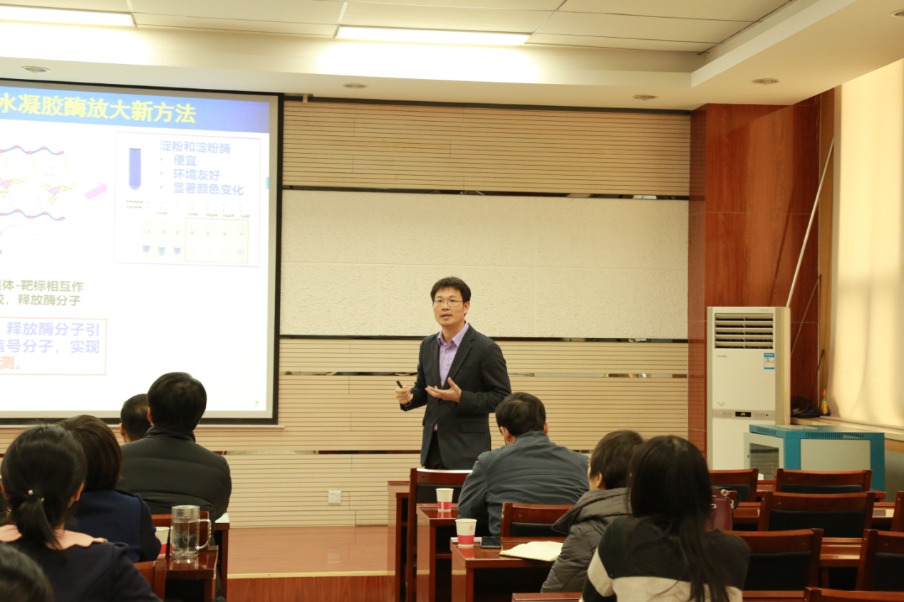 杨朝勇教授详细地介绍了其课题组近年来的工作成果,主要围绕即时检测(如何建立特异,灵敏,简单,便捷的即时检测方法)、液体活检(基于微流控芯片的疾病筛查新技术)、单细胞分析三个方面的研究工作进行了精彩的讲解。报告会后,拉斯维加斯娱乐城官网 师生与杨朝勇教授作了进一步的探讨与交流,提问环节现场气氛热烈,此次报告会使拉斯维加斯娱乐城官网 师生受益匪浅。