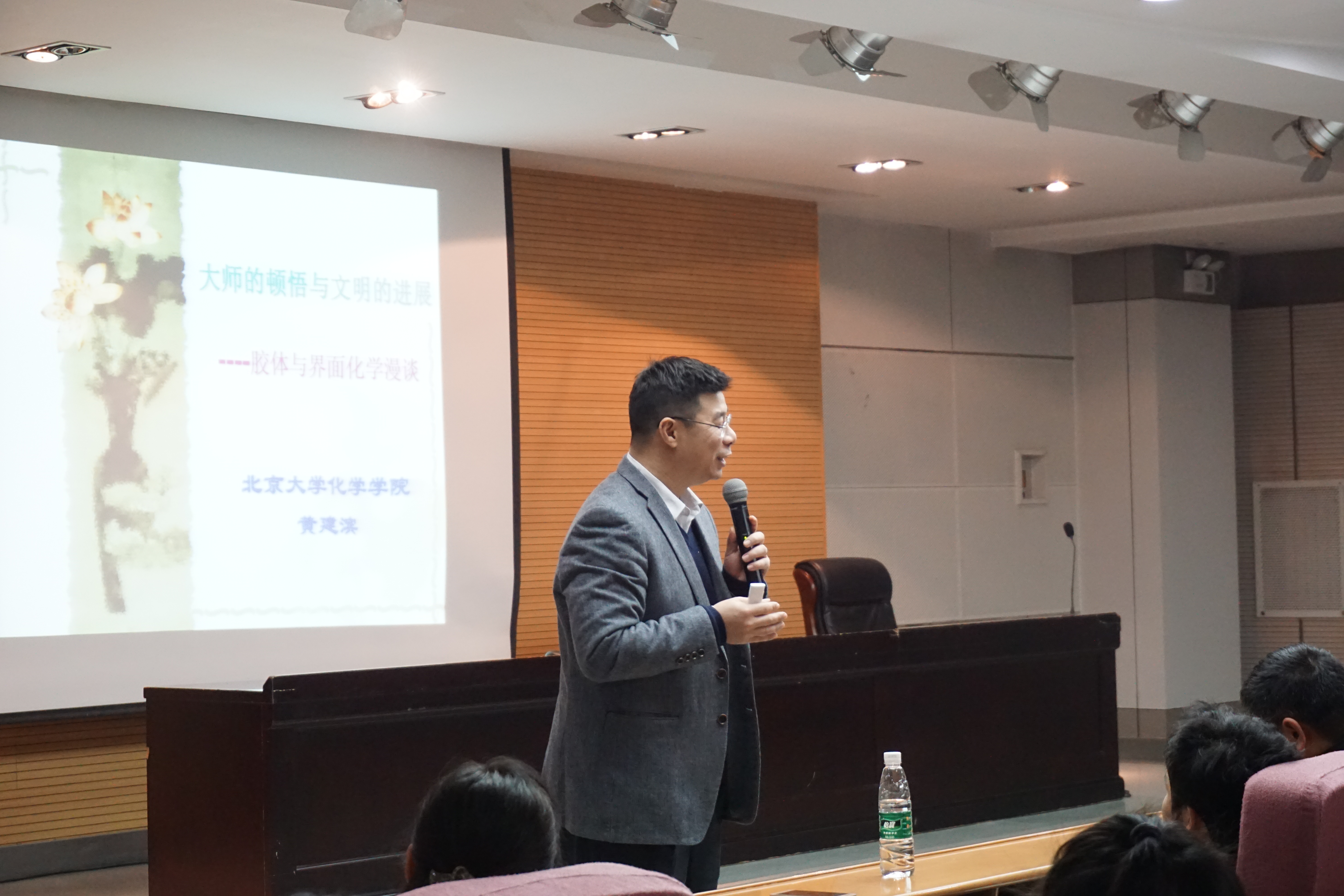 本科生做报告,报告主题为“大师的顿悟与文明的发展――胶体与界面化学漫谈”。讲座在雁塔校区崇鋈楼三层归仁堂举行,拉斯维加斯娱乐城官网