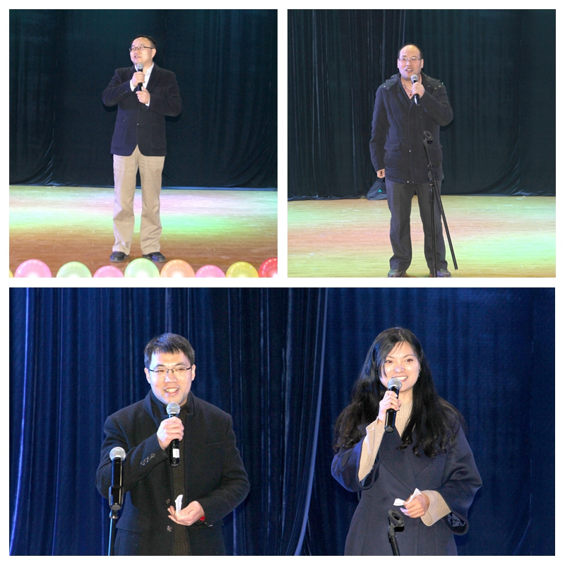 联欢会在和谐欢快的合唱歌曲《同一首歌》中拉开帷幕。整场联欢会内容丰富,形式多样,精彩纷呈;各工会小组的老师们纷纷登台,一展身手。吉他弹唱《冬季校园》、自编自演的相声《名字》、魔术表演、诗歌朗诵《父亲》以及歌曲合唱、歌曲串烧等节目接连上演,赢得了台下观众的阵阵掌声;中间穿插的游戏《微信摇一摇》、《五毛和一块》、《凑东西》使整个联欢会的气氛逐渐达到高潮;最后,联欢会在游戏《微信抽奖》中落下帷幕。
