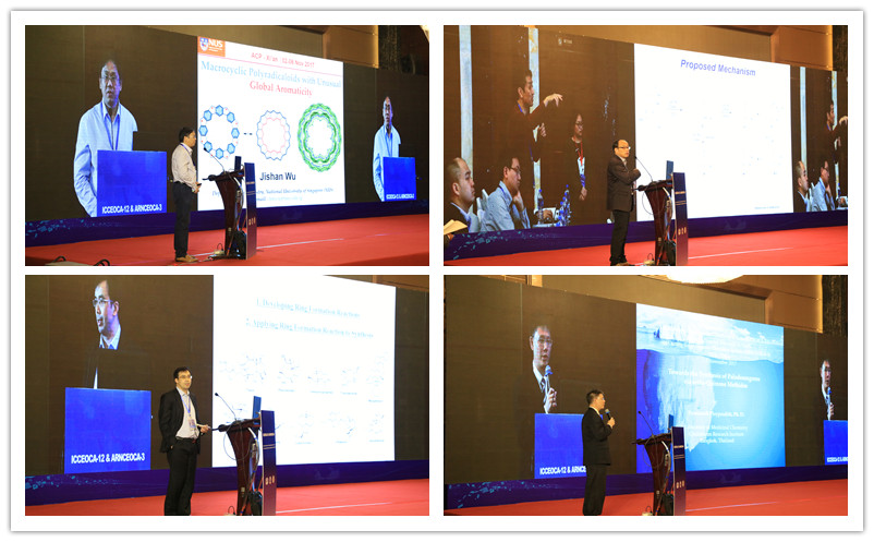 2017年11月4日,来自新加坡国立大学吴继善教授、韩国Chonnam National University的Sunwoo Lee教授、北京大学余志祥教授、泰国Chulabhorn Graduate Institute的Poonsakdi Ploypradith教授、台湾国立中山大学的吴明忠教授从有机方法学、环加成反应、全合成等方面将有机化学的不同领域的最新研究成果呈现给与会代表,并和与会代表进行了深入的讨论。拉斯维加斯娱乐城官网拉斯维加斯娱乐城官网 的王涛博士作了一分钟报告和墙报展示。