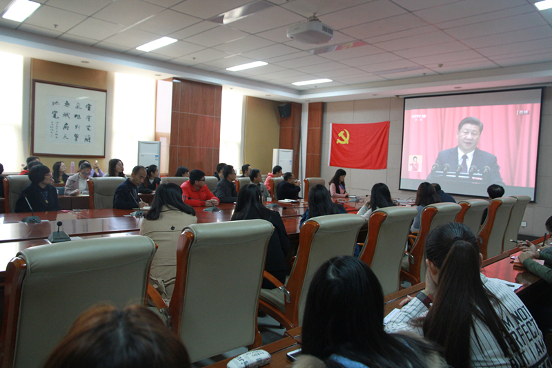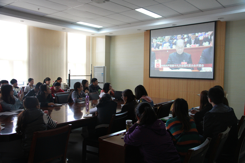 今天上午,中国共产党第十九次全国代表大会在北京盛大召开,拉斯维加斯娱乐城官网 党委委员、党政领导,教工支部书记和党员代表,研究生党员、本科生党员和入党积极分子分别在致知楼1568、1621、1347和1447会议室收看十九大开幕式。教工中教应化支部单独组织党员在1555室集中收看十九大开幕式。