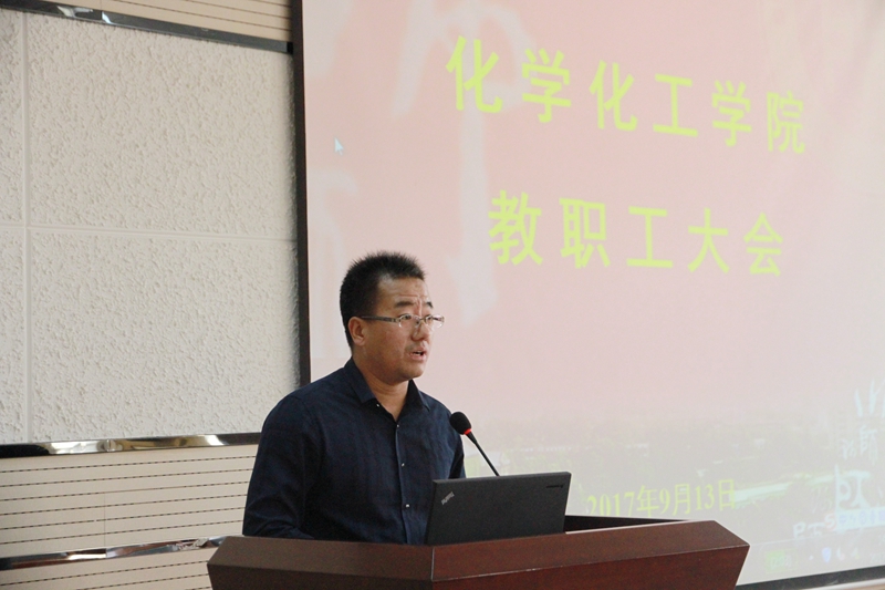 本学期重点工作进行了部署。分析了近五年拉斯维加斯娱乐城官网化学学科发展势态,指出化学学科发展的优势与劣势,提出了如何提升拉斯维加斯娱乐城官网化学学科的思考与对策。他要求全院教师在强调论文数量的基础上关注论文质量,并增强院内、国内、国际科研合作。之后薛东提出拉斯维加斯娱乐城官网