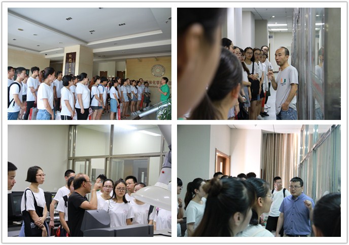 各楼层灯火通明,教师工作室、实验室、所有的学术交流室全面开放,整个大楼里人头攒动。科研团队或教师个人早已准备好了各类宣传材料,或纸质版、或PPT版,充分地向营员们展示自己的工作;各实验室的研究生们停下手头的实验工作,带领着营员们参观、介绍各自实验室情况;已经在“夏令营工作QQ群”中和营员们打的火热的青年才俊们用他们对科研工作的激情感染着营员们;在外出差的老师们除了派出自己的研究生团队外,纷纷通过网络向营员展示自己实验室的工作。什么是开放?什么是包容?什么是热情?在这一晚,被师大化学人充分展示。