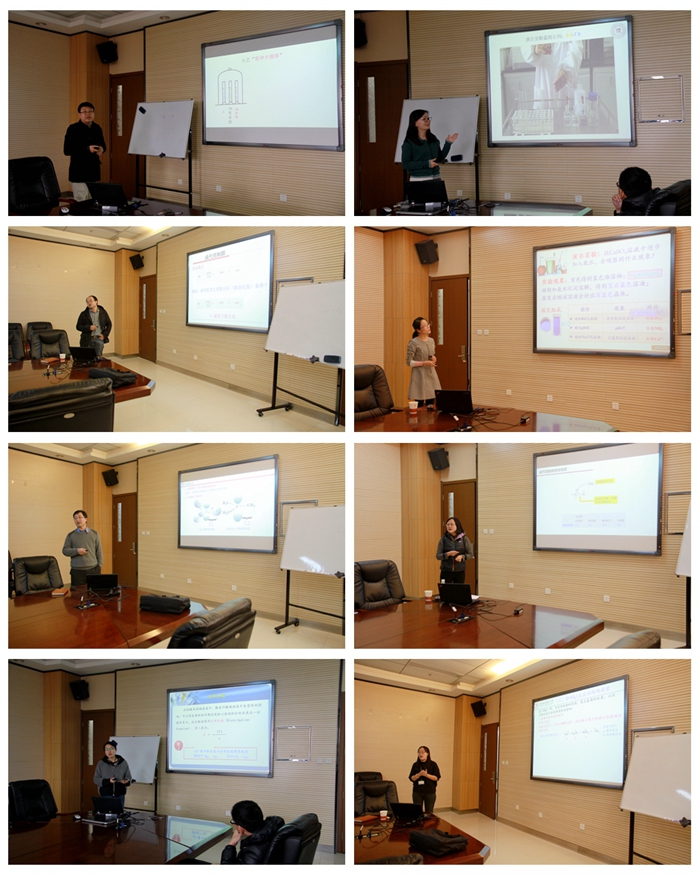 课堂教育教学水平。评委们对每位青年参赛教师的课堂教学演示进行了提问和细致点评,针对青年参赛教师在课堂教学演示中存在的普遍性问题进行了总结归纳,并提出了建设性的意见和建议。随后,评委们综合了青年参赛教师在教学设计方案、课堂教学展示、现场答辩等方面的情况,经认真细致讨论,客观严谨的评判,各小组分别推选出李靖、魏灵灵、赵娜、李夏冰四位老师参加第二轮预赛选拔。