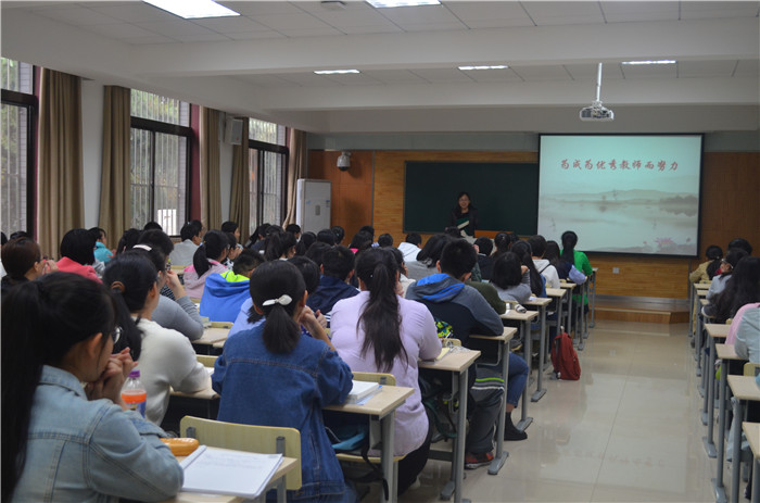 讲座开始前,陈老师邀请同学们共同讨论交流了对教师职业和教育事业的看法与观点。陈老师总结同学们的发言时谈到,教师职业大有希望。不管是从目前国家的教育现状出发,还是从未来的教育事业发展分析,教师的社会地位和社会需求都是不断上升的,属于朝气蓬勃的发展行业。当前国家发展飞速,教师肩负着光荣的历史使命和重大的社会责任,社会需要更多的优秀教师,拉斯维加斯娱乐城官网