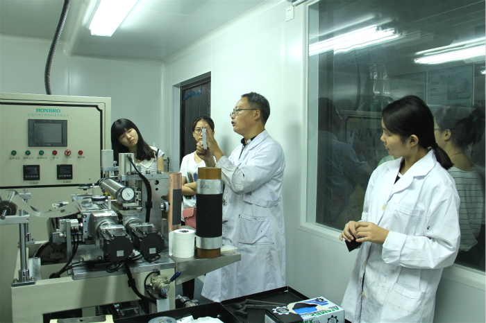 国家纳米科学中心。在苗力孝副研究员的引领下,同学们参观了我国纳米科学基础研究和应用基础研究的硅谷——国家纳米科学中心。苗老师用风趣的语言、通俗的文字给同学们介绍了锂电池的设计制作原理、充放电核心技术等,并一一展示了制作高精密度、高性能锂电池的尖端技术与加工设备。随后,在纳米所的科普知识展示大厅中,工作人员给同学们介绍了纳米材料的概念和原理、现有的应用技术和未来发展方向,并且对研发制作纳米材料所需的仪器及技术进行了讲解。笃学班的同学们也充分利用这一机会,结合自身所学,积极向老师们请教。参观结束,纳米中心的工作人员给同学们赠送了科普书籍与光盘供同学们进一步学习。