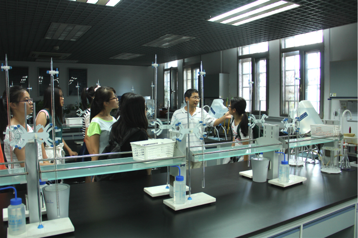 。首先,实验中心副主任高珍老师带领同学们参观了北京大学化学基础实验教学中心和化学实验示教中心,每到一处,均有专业老师详细讲解。参观过程中,高主任着重对北大本科生化学实验课程体系设置、培养目标及创新形式等内容进行了阐述,并对四大基础化学实验室及常用仪器纷纷做了介绍。在化学实验示教中心,同学们对陈列的不同年代的天平、剖开的测试分析仪器、“编织”的化学大分子模型等产生了浓厚的兴趣,纷纷表示通过实物参观,对一些先前只能在书本上看到的仪器及内部构造有了更直观的印象。最后,同学们参观了北京大学化学与分子工程拉斯维加斯娱乐城官网