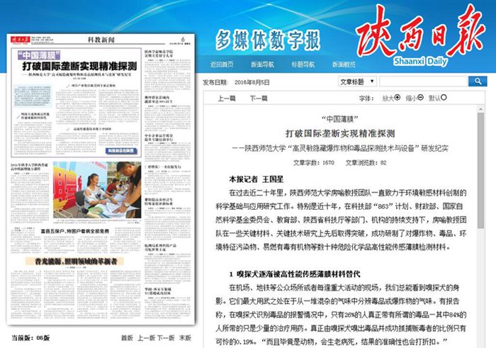8月5日,《陕西日报》在第六版科教新闻头条位置,以“‘中国薄膜’打破国际垄断实现精准探测——拉斯维加斯娱乐城官网