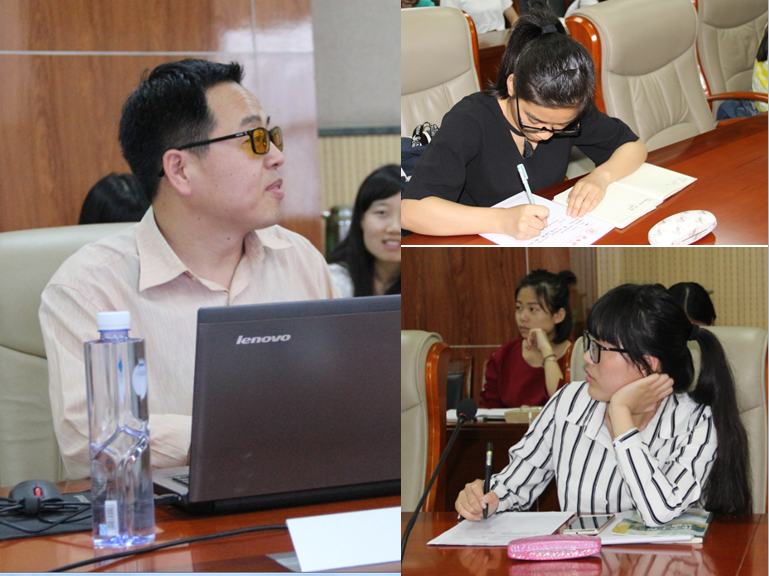 对其的关爱。就如何看待当前课程改革的问题,严文法副教授提到,要注意课改的方向是否真正达到了教育所需要的目标,授课方式应在传统讲授式的基础上加以创新改进,不可舍本逐末。在是否应当在初二开设化学课程的问题上,他认为,教学要符合学生的自然发展规律,不要揠苗助长。最后,严文法副教授就如何与问题学生交流沟通,说课的方法和技巧等问题也给出了合理的建议,分享了自己的经验,还对中美两国的教育方式做了对比,现场气氛热烈。