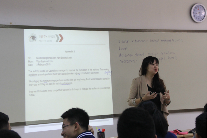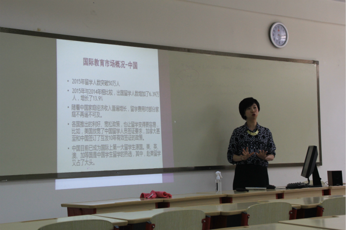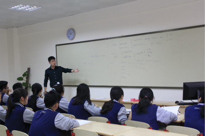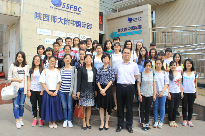 首先,陕师大附中冯军副校长热烈欢迎各位老师和同学们的到来,并安排同学们简短参观了国际部。随后,两位老师和同学们一起参与了国际部王石和腾青老师的化学和商务两个科目的双语教学课堂。同学们既领略了化学课堂上专业化学英语名词的冗长、复杂,也感受到了商务课堂上用英语解决实际公司运营问题的有趣和形象。课堂上,化学卓越班的同学们与师大附中国际部的同学老师们进行了互动和交流,给知识的讲解过程注入了活力。之后,国际部张蓓校长为老师同学们分析了目前中国的留学形式,讲解了关于中学出国留学授课模式以及对双语老师的要求和需求,并对同学们抱以相当大的期望。最后,校长与老师同学们合影留念,此次见习圆满结束。