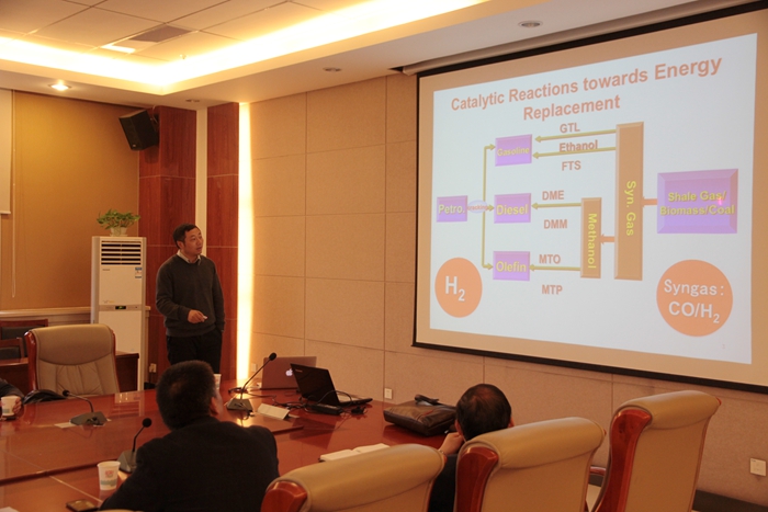 马丁研究员详细讲解了其研究团队在碳基能源催化转化方面的研究成果,主要介绍了液相费托反应的最新研究进展,并着重讲解了运用理论计算与原位实验的方法,研究铁基催化剂的活性相与费托反应历程。持续一个多小时的报告会气氛热烈,交流充分,马丁研究员在铁基催化剂费托反应机理方面的独特见解给参会者留下了深刻印象,使拉斯维加斯娱乐城官网