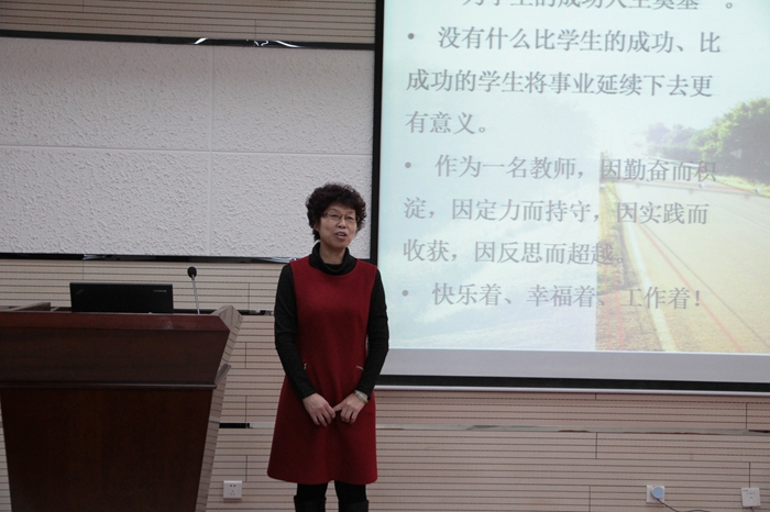 师生系统介绍了关于化学师范生教学设计技能的探索,并结合自己的学术研究对其进行了深入地解读,指出了化学微格教学设计、微课教学设计、可视化教学设计对于化学师范生教学设计技能的重要作用,并就化学微格教学设计、微课教学设计、可视化教学设计等内容与到场师生进行了深入的讨论与交流。吴晓红教授风趣幽默的语言和精彩的讲述赢得在场师生的阵阵掌声。会后,吴晓红教授还从自身经历出发,为同学们提出了中肯的建议和殷切的期望。