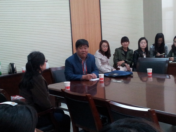 分党委书记高玲香教授、化学课程与教学论责任教授周青老师的陪同下与2012、2013及2014级化学课程与教学论、学科教学(化学)、科学与技术教育专业研究生进行了座谈交流。