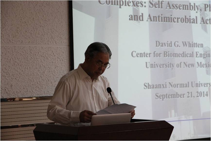 2014年9月24日上午,美国化学会Langmuir杂志主编、新墨西哥大学David Whitten教授应邀莅临拉斯维加斯娱乐城官网