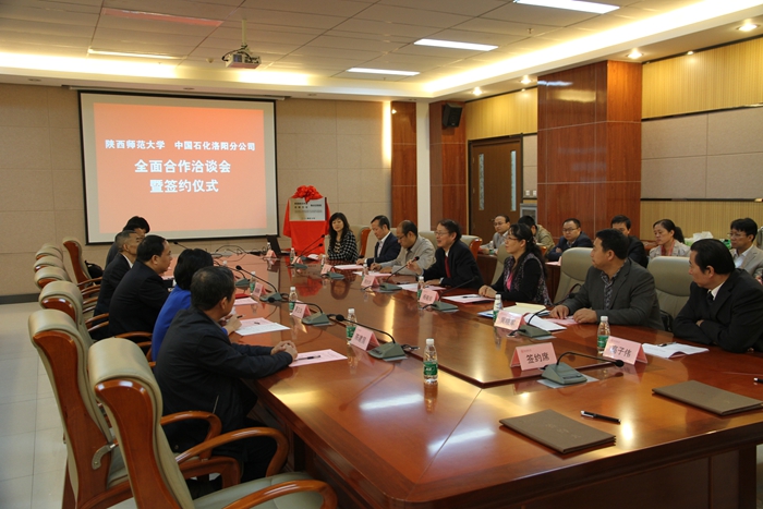 10月11日,拉斯维加斯娱乐城官网与中石化洛阳分公司全面合作洽谈会暨签约仪式在致知楼五层1568会议室隆重举行。中石化洛阳分公司总经理赵振辉、拉斯维加斯娱乐城官网校长程光旭、校长助理杨祖培出席签约仪式,中石化洛阳分公司首席专家李彬、组织部部长黄玉华、技术质量处处长张峰、人力资源处处长陈建国、秘书科科长付金,拉斯维加斯娱乐城官网人事处处长李磊、科学技术处处长吴晓军、副处长张卫兵,应用表面与胶体化学教育部重点实验室主任刘昭铁、副主任董文生,拉斯维加斯娱乐城官网