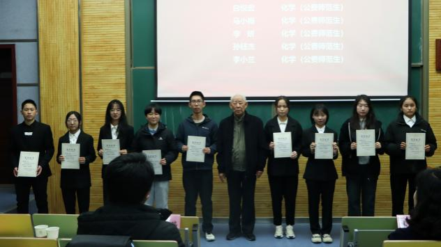 新一代的化学人,继承先辈优秀品质,常怀感恩之心,接力奋进,激发创新潜力;三是希望同学们要充分认识化学学科对于国家和社会发展的意义,在学习中与国家重大战略相结合,热爱化学,学好化学,做社会主义建设者和接班人。