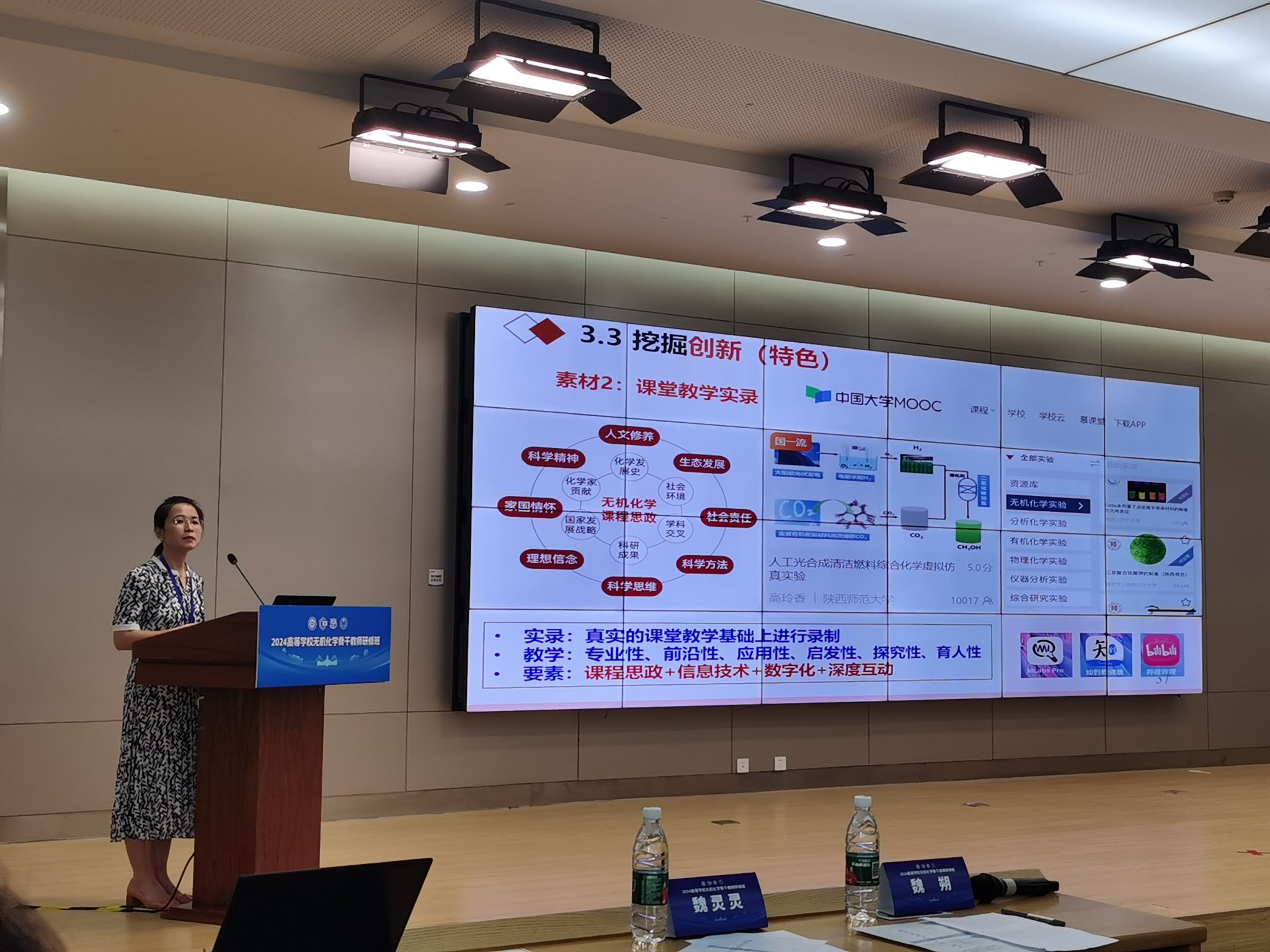 研修活动中,无机化学团队教师认真学习了化学“101计划”无机化学教学领域国家级教学名师、无机化学课程建设和人工智能数字化建设领域等专家关于化学“101计划”课程规划、无机化学课程设计、知识模块体系设置与教学方法建议、新形态教材建设、优秀教学案例和教学创新模式分享、人工智能AI技术赋能教育教学创新优化、知识图谱建设等方面的报告,并参加了交流研讨。会议还颁发了化学“101计划”无机化学教学案例创新大赛获奖名单,魏灵灵老师提交的作品“氮族元素”案例设计荣获一等奖,并应邀做了关于教学比赛促进教学成长方面的报告。