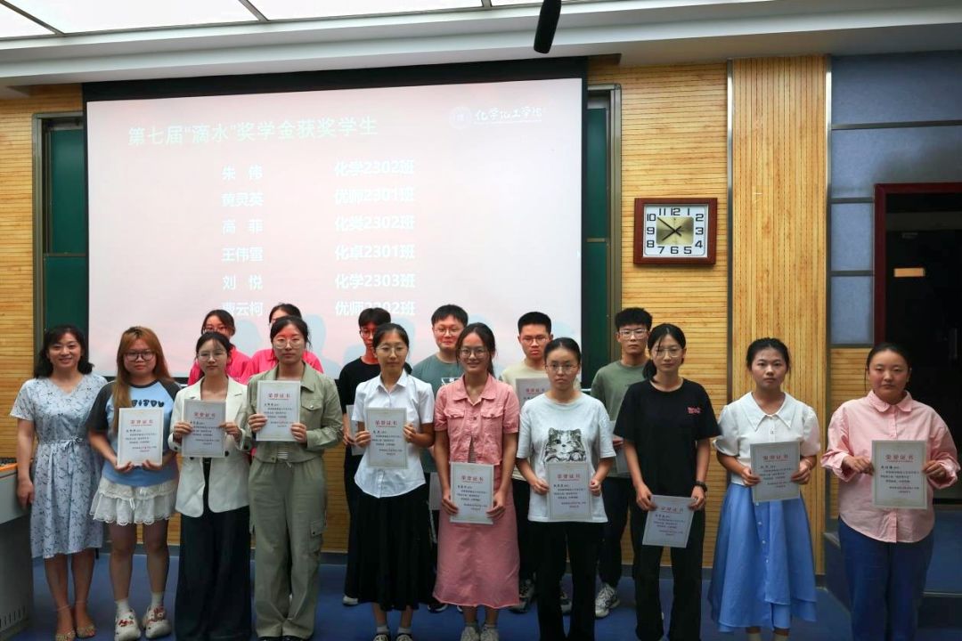 第七届“滴水”奖学金获奖学生名单》并介绍了评选情况。高玲香书记为“滴水”奖学金获奖学生颁发证书。
