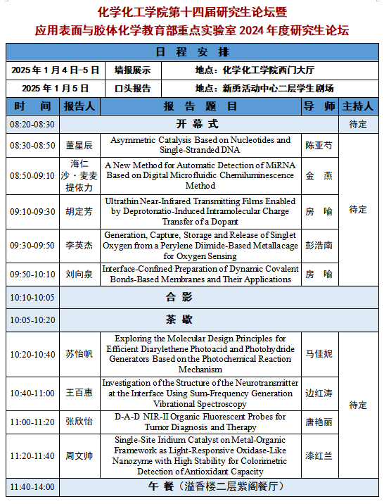 第十四届研究生论坛暨应用表面与胶体化学教育部重点实验室2024年度研究生论坛,诚挚邀请拉斯维加斯娱乐城官网